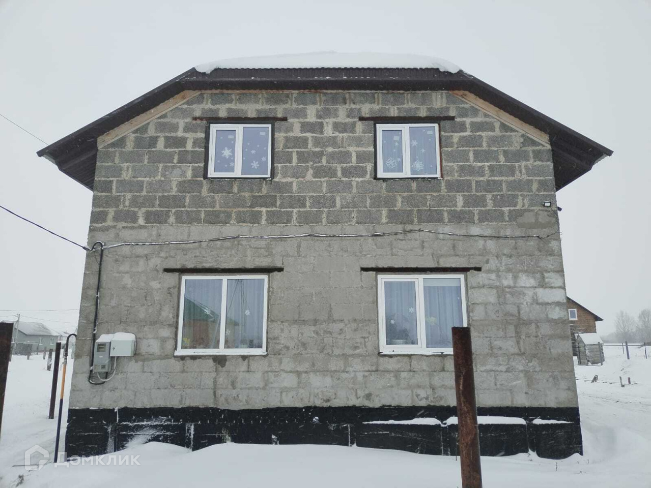 Фундамент ленточный. Стены арболит 300х250, полы зал доска 50, утепленные 150,сверху лист ОСП 12мм. Полы кухня, санузел, прихожая бетон. Чистовая отделка.