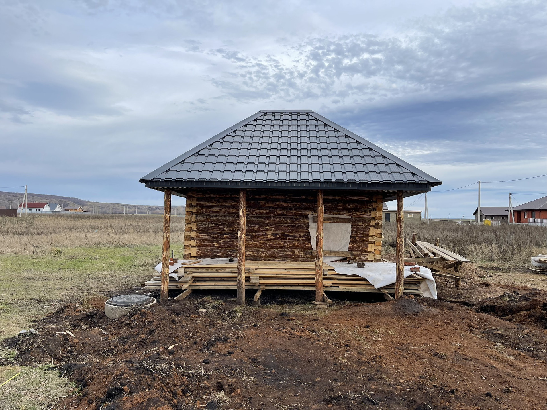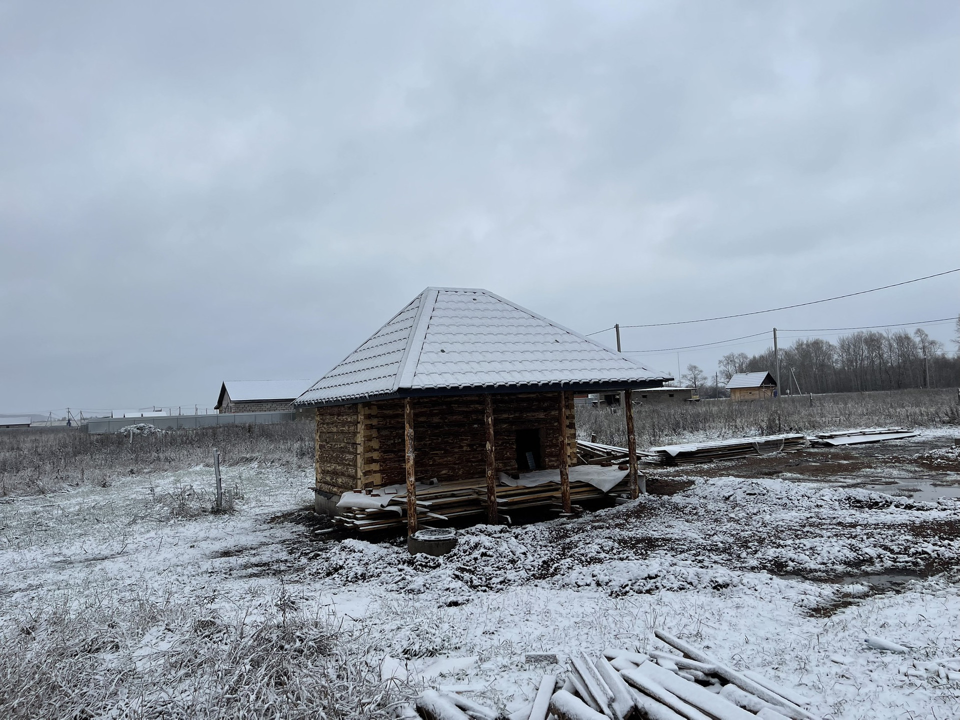 В баню заведен свет/вода из будущего дома