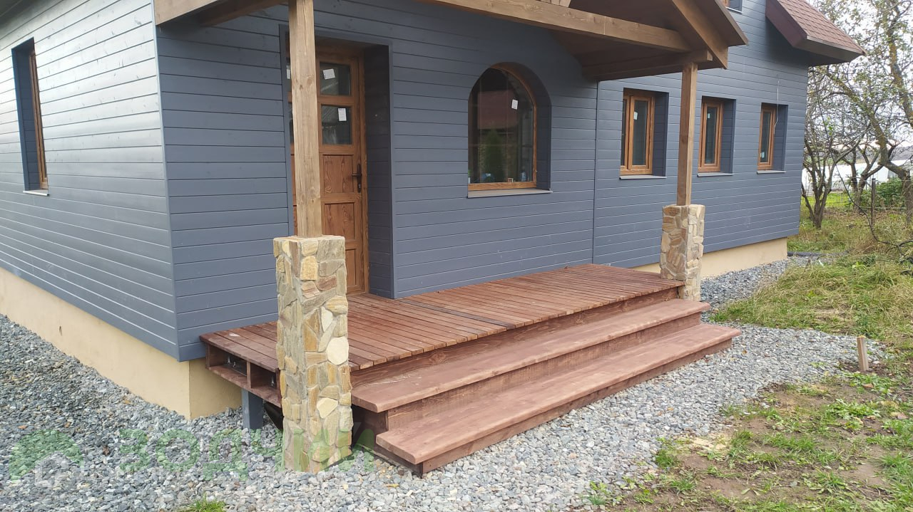 • большая кухня-гостиная с выходом на террасу из лиственницы,