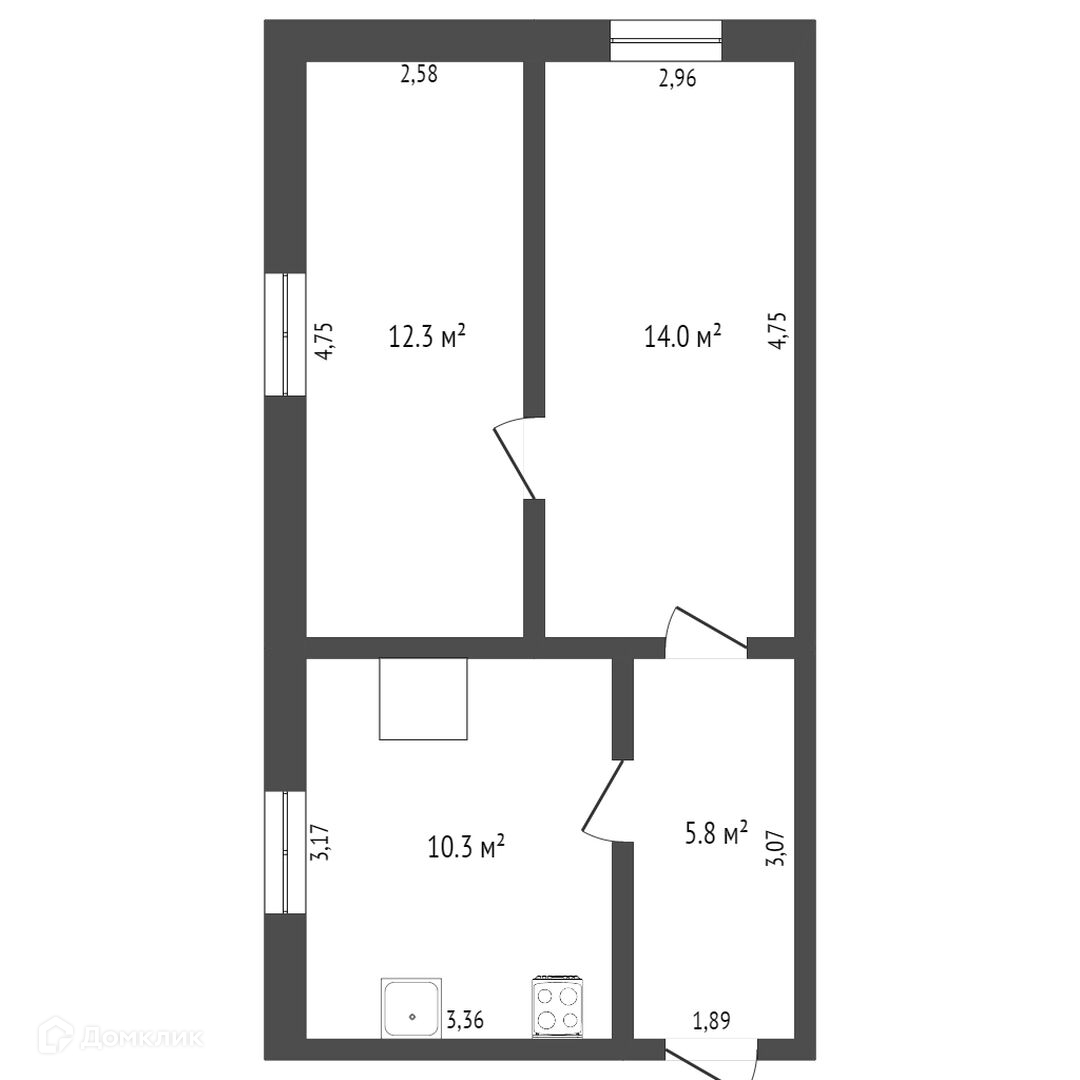 Общая площадь 42.6 м2