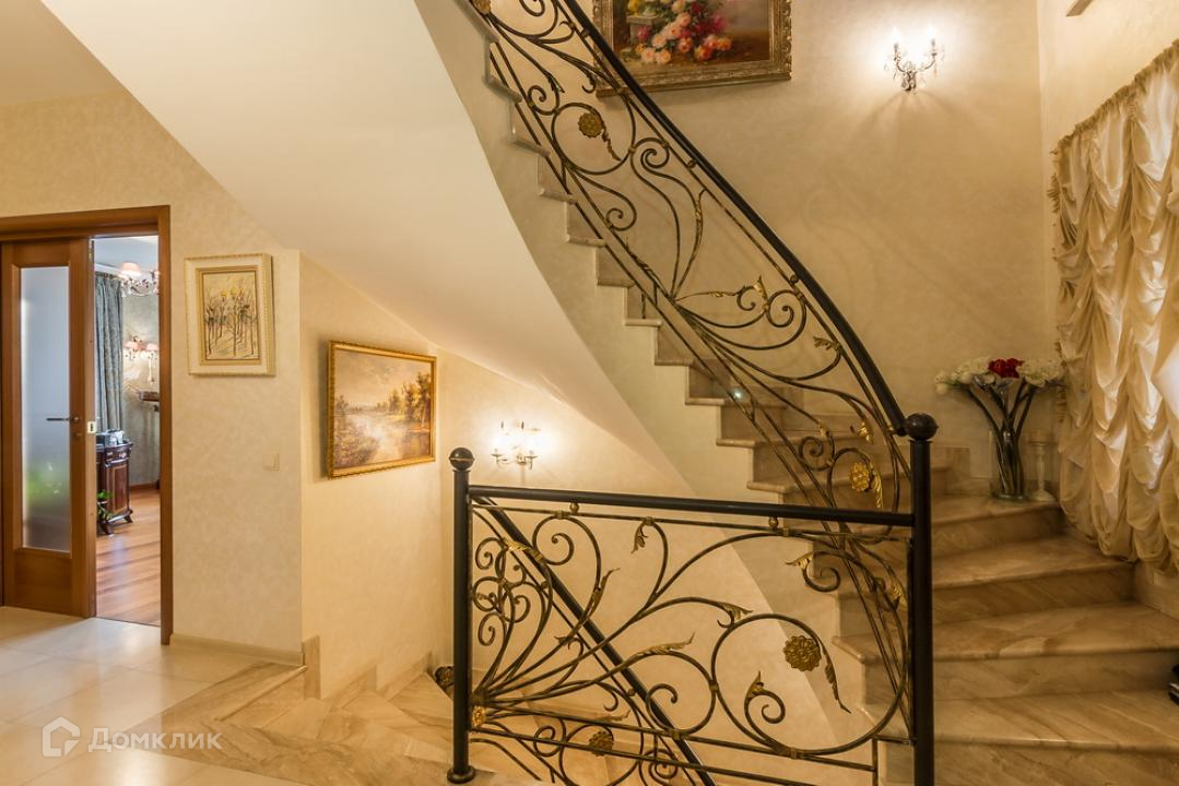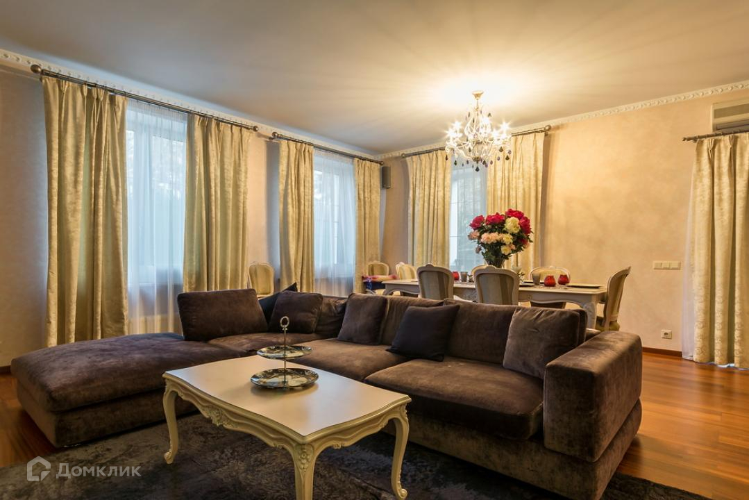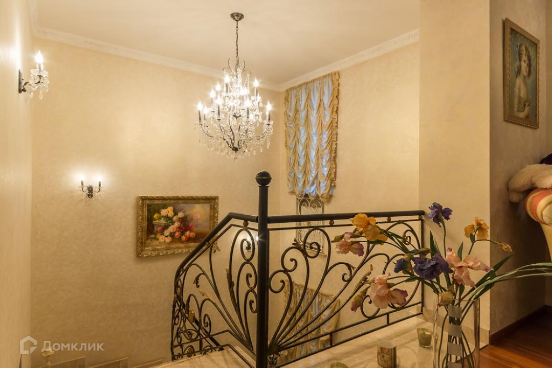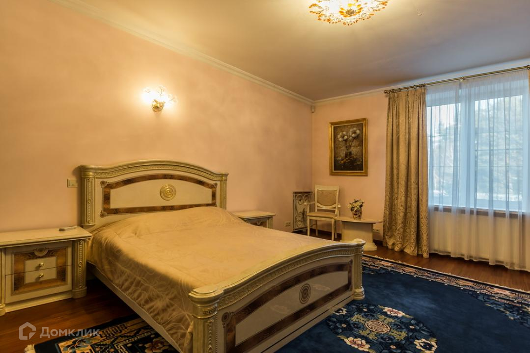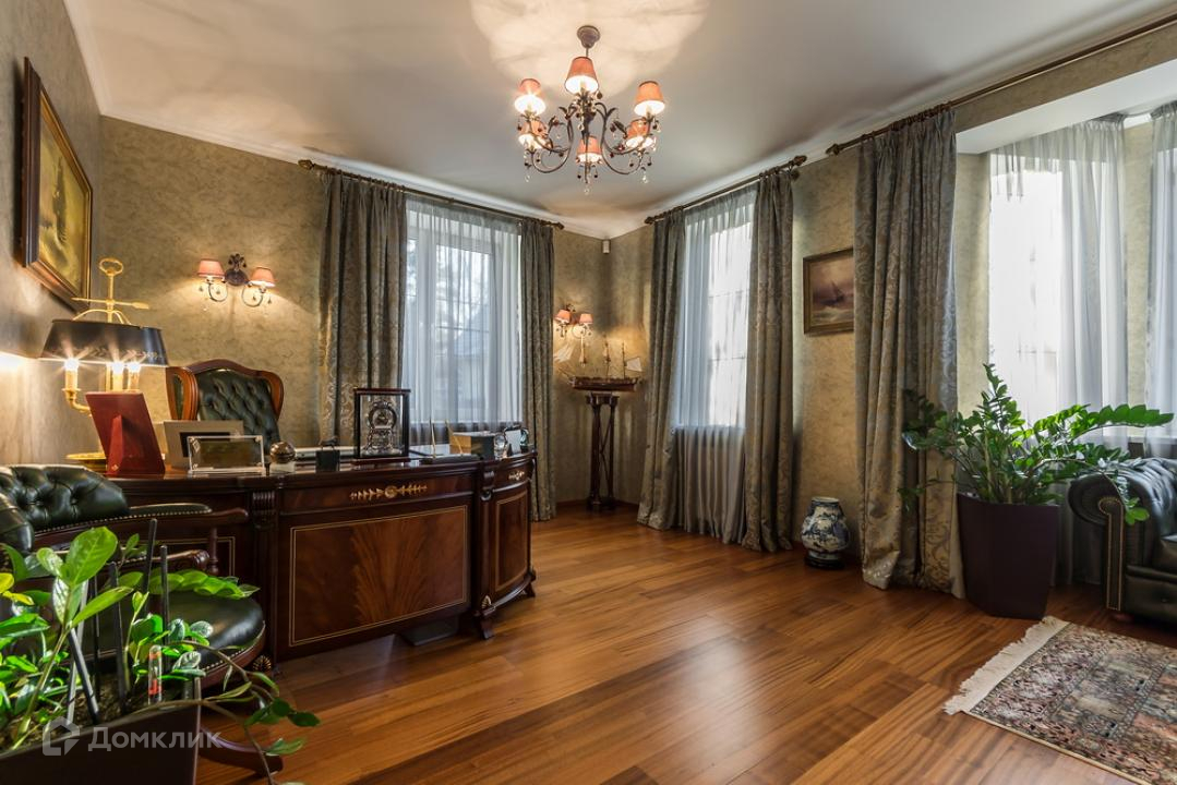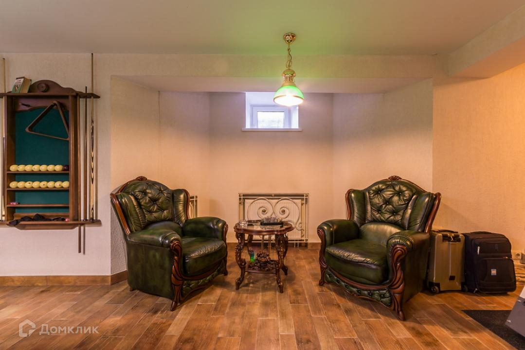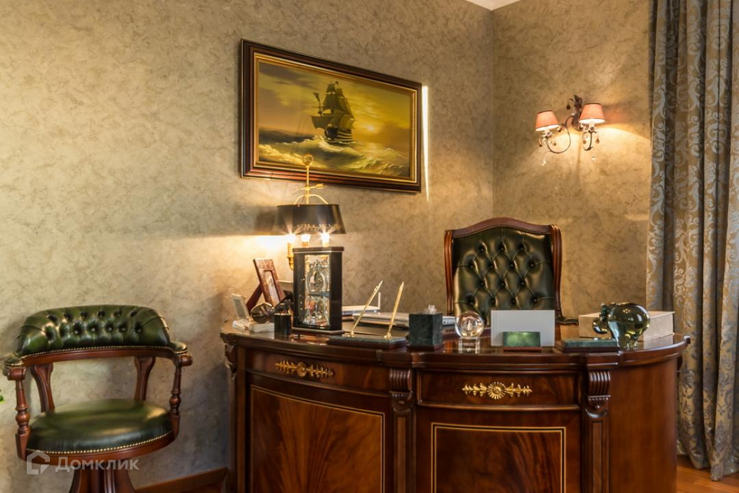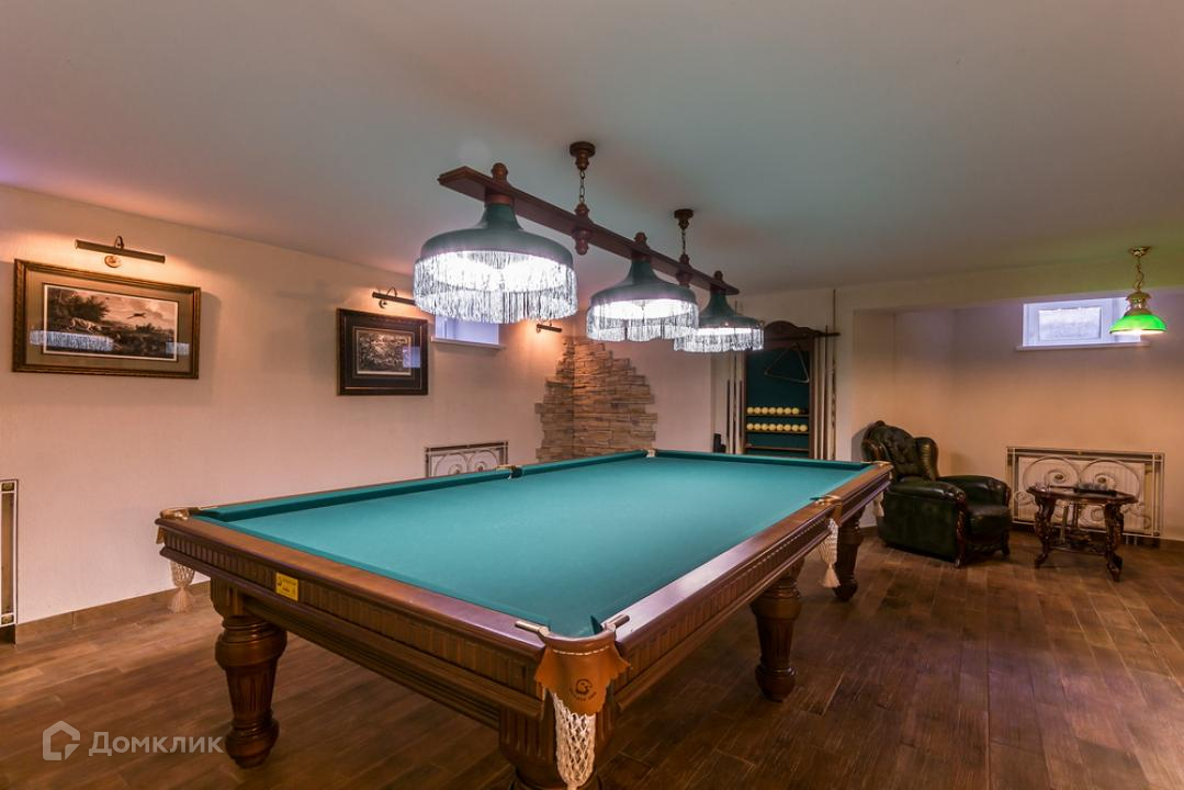 Предлагается дом в коттеджном поселке на территории пансионата. Функциональная планировка включает: гостиную с камином, бильярдную и тренажерный зал, сауну, 4 спальни. Внутреннее пространство выполнено в классическом стиле, установлена мебель из ценных пород дерева, интерьер красиво декорирован картинами, коваными элементами, авторскими люстрами и светильниками.