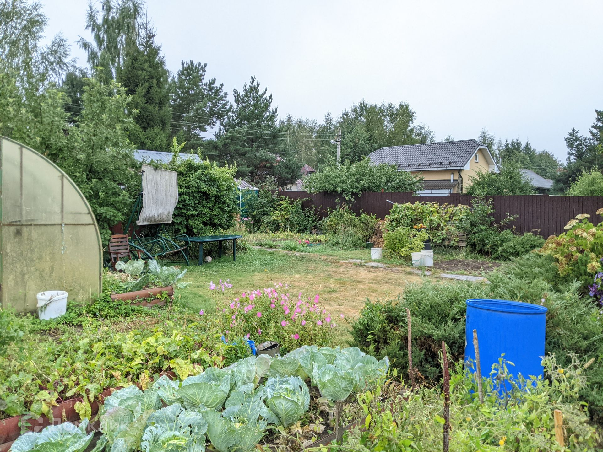 В домике 2 этажа: 5 комнат, небольшая кухня, есть печь. С трех сторон - участки соседей, некоторые из них проживают постоянно.