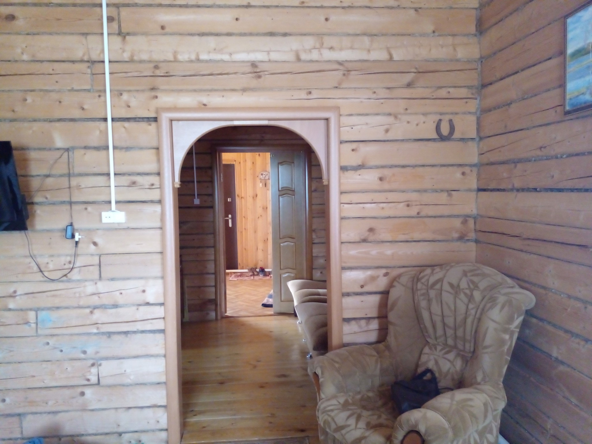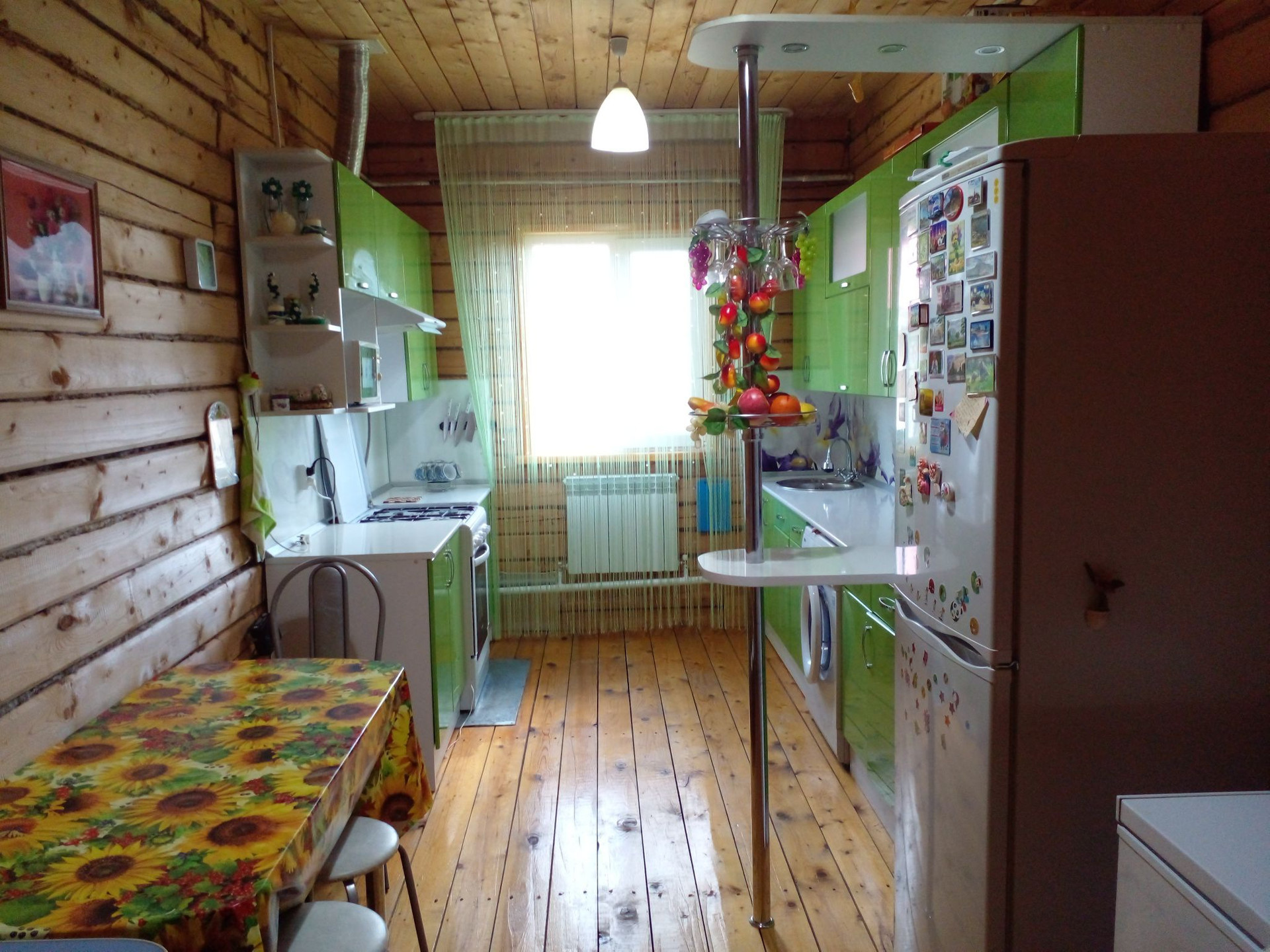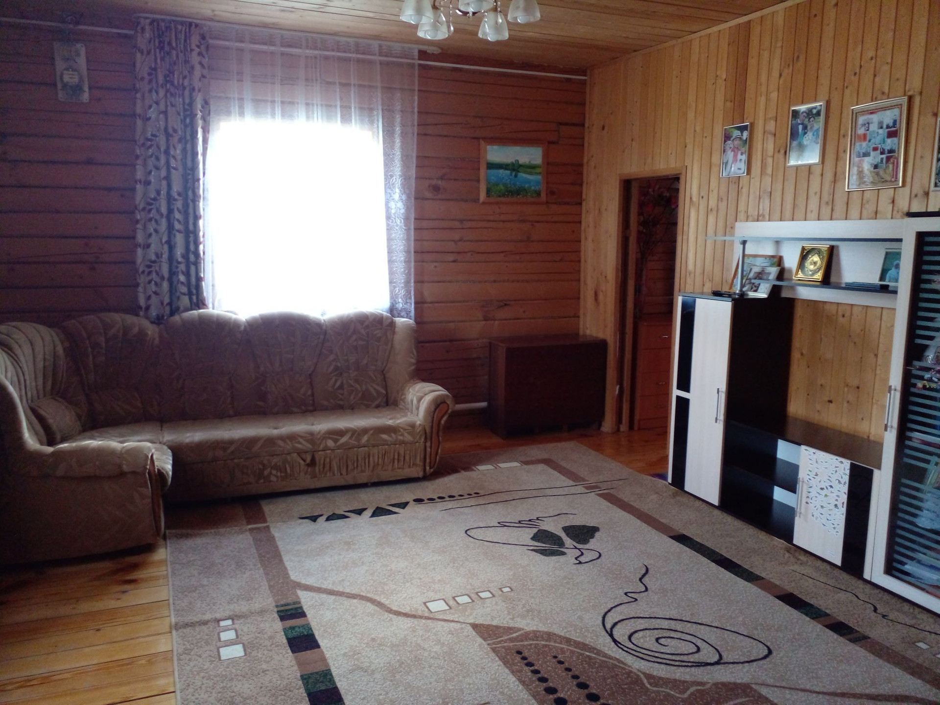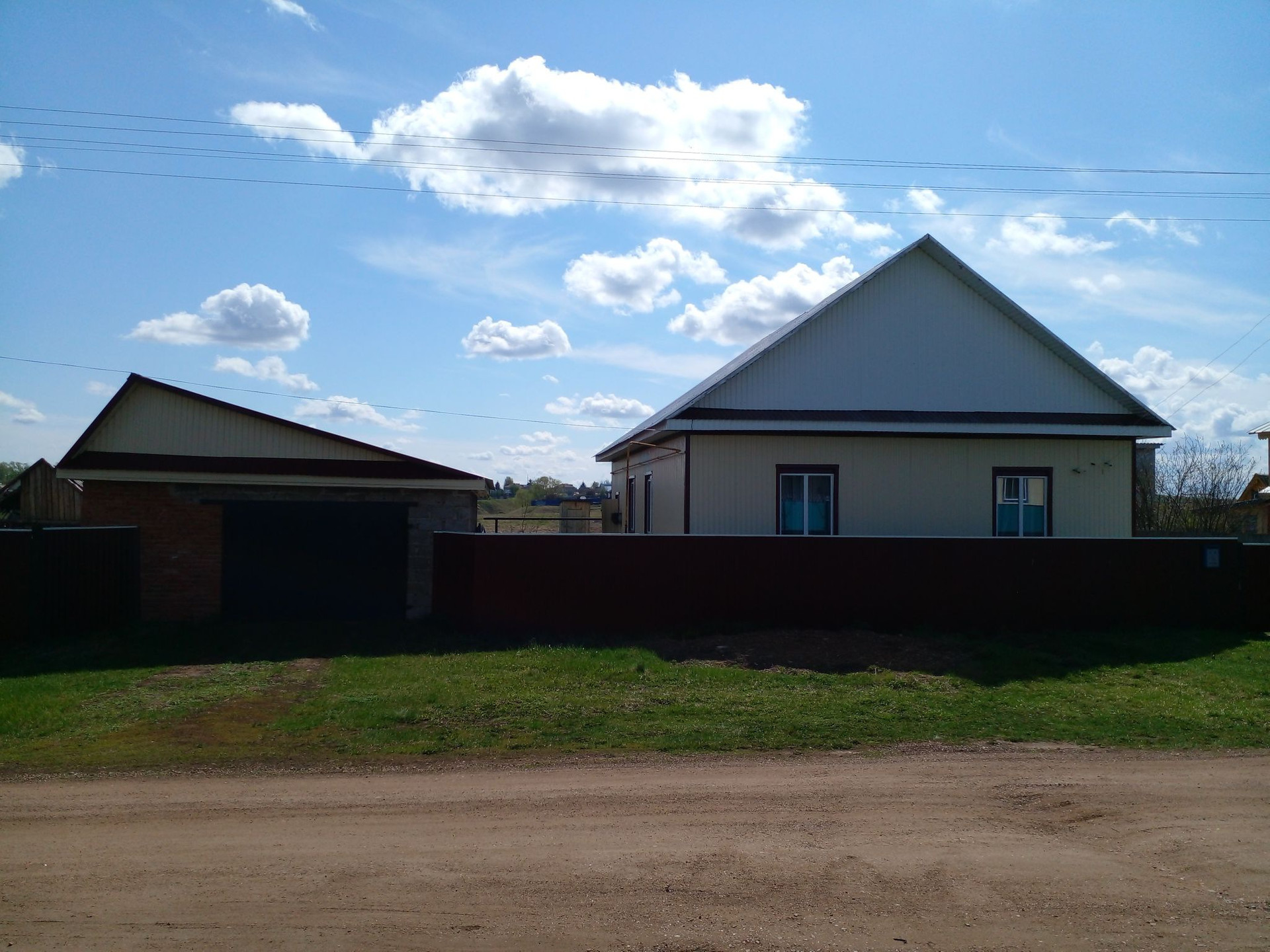 Дом из бруса , утеплён и обшит профнастилом, пластиковые окна.Две спални ,большой зал,кухонная гарнитура  и прихожая сделаны на заказ . Есть также душевая и туалет. Канализация,центральное водоснабжение . Имеется баня, гараж , дровяник и туалет. Во дворе есть погреб .