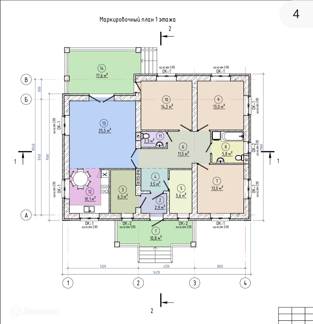 План дома: три просторные раздельные комнаты площадью 14,2 кв.м. 13кв.м. и 13кв.м., кухня-столовая площадью 36 кв.м., 2 санузла, котельная, гардеробная, открытая терраса под крышей.