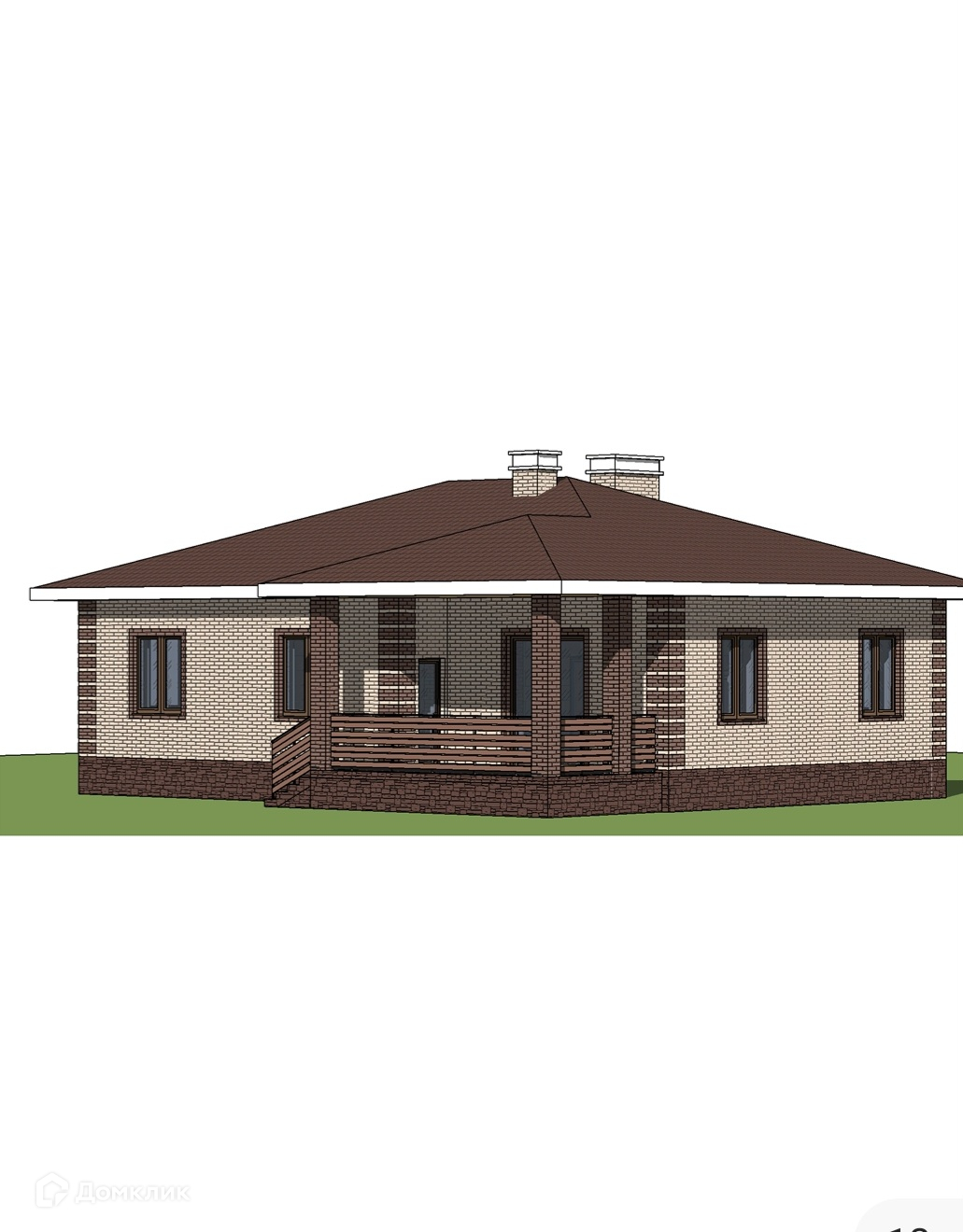 Крыша: Вальмовая с террасой под один уровень, четырехскатная, металлочерепица.