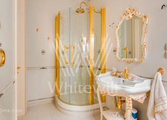 ID 10 791. ПЖСК Новая Деревня. Загородный дом площадью 485 м² построен на просторном лесном участке 45 соток. Фасад облицован красным клинкерным кирпичом, окна декорированы белыми наличниками и коваными элементами. Интерьер в светлых оттенках выдержан в классическом стиле, отделан лепниной и резьбой. В коттедже спланированы 5 спален, в одной из которы... |