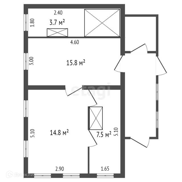 Общая площадь 39.9 м2
