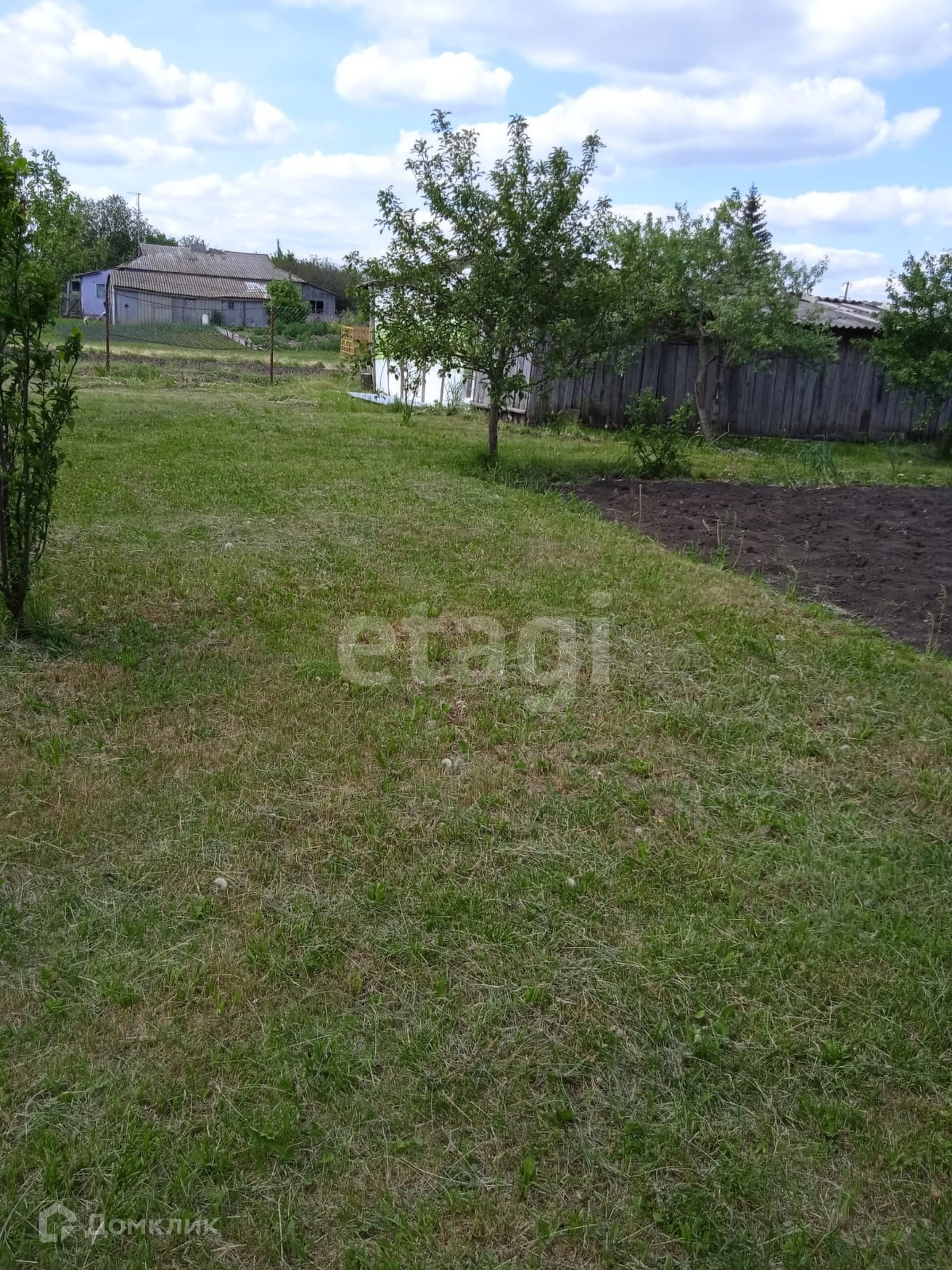 На территории дома растет яблони, малина, клубника, смородина и жимолость. Земля очень плодородная. Участок не затапливается.