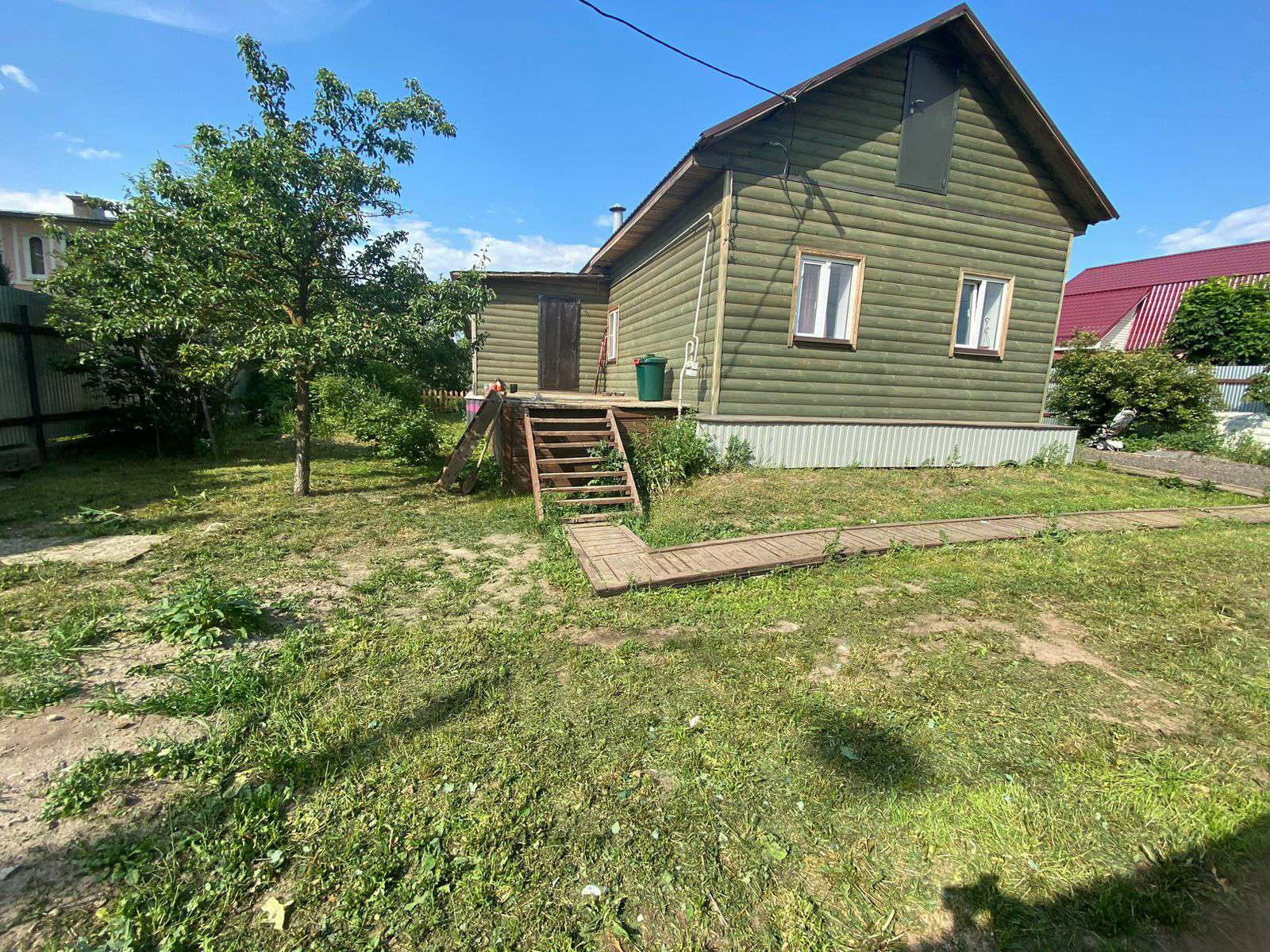 Ухоженный ровный сухой участок 21 сотка. Палисадник, огороженный штакетником, плодовые деревья, кустарники, малина, ежевика, смородина. Есть хоз блок каркасный, утепленный для хранения газонокосилки, снегоуборщика и садового инвентаря.