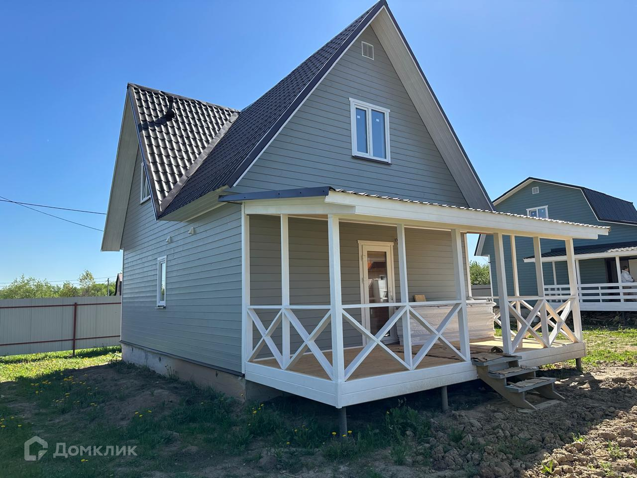 Участок с забором, распашные ворота, калитка, парковка и плитка до дома. Современный дом,полностью готовый для круглогодичного проживания.