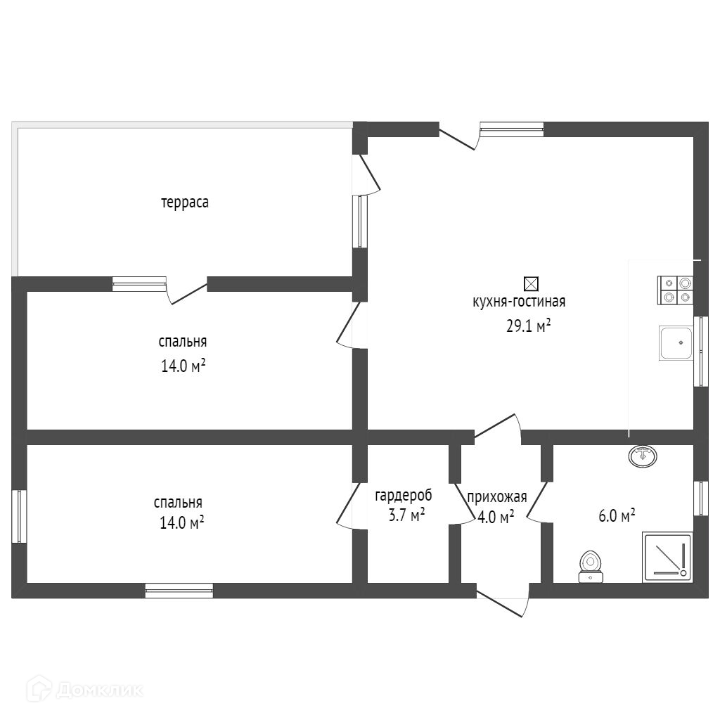 Общая площадь 70.8 м2