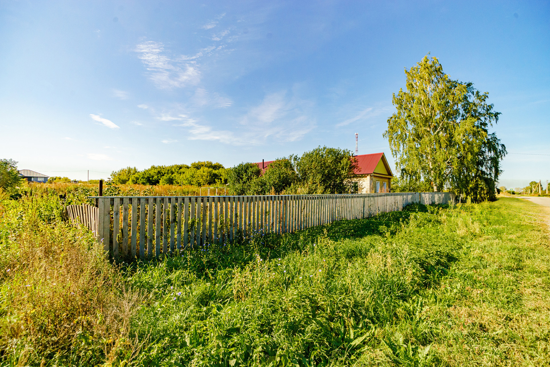 Участок прямой и ровный, к границам ведет хорошая дорога. Высажены плодовые деревья, имеется сад.