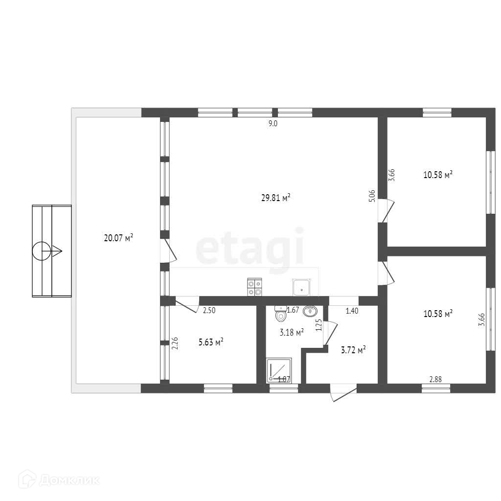 1-этажный дом, 80 м2, на продажу в селе Юсупово, коттеджный посёлок Рублево, 64