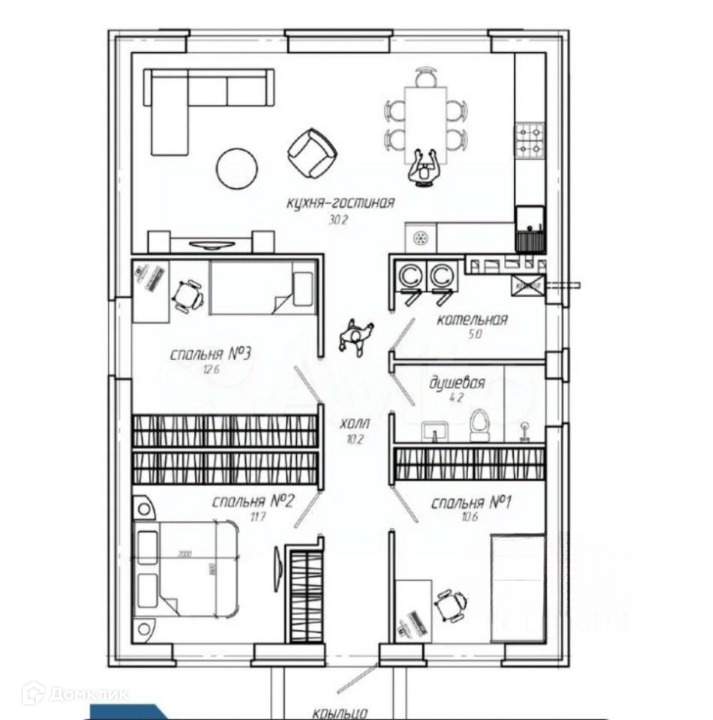 санузел 4,2 м² котельная 5,0 м² холл 10,2 м²