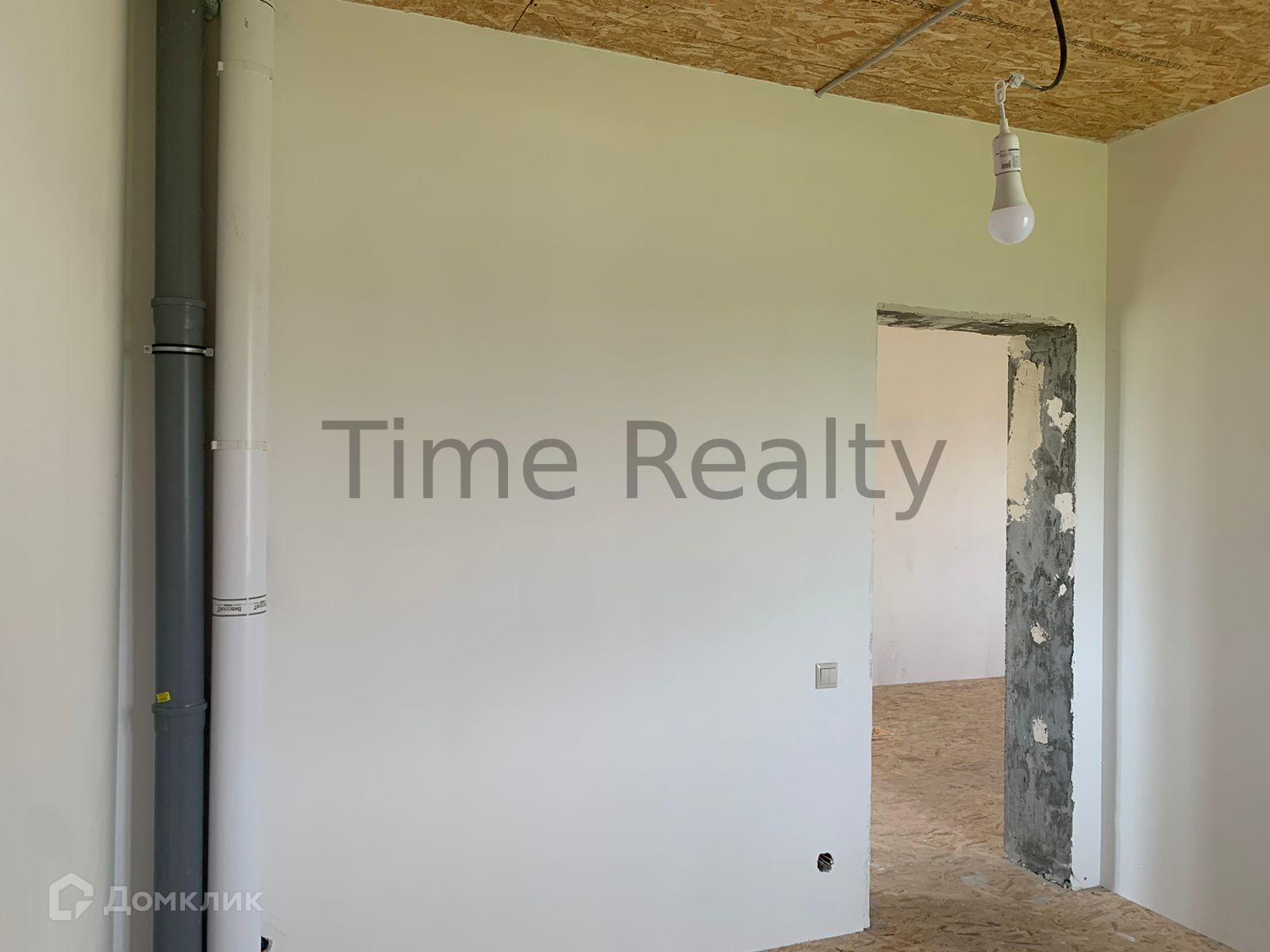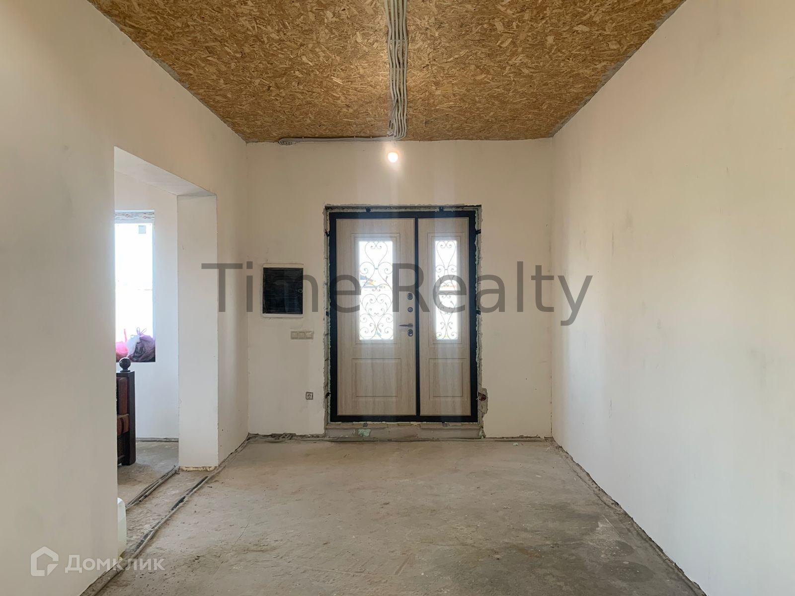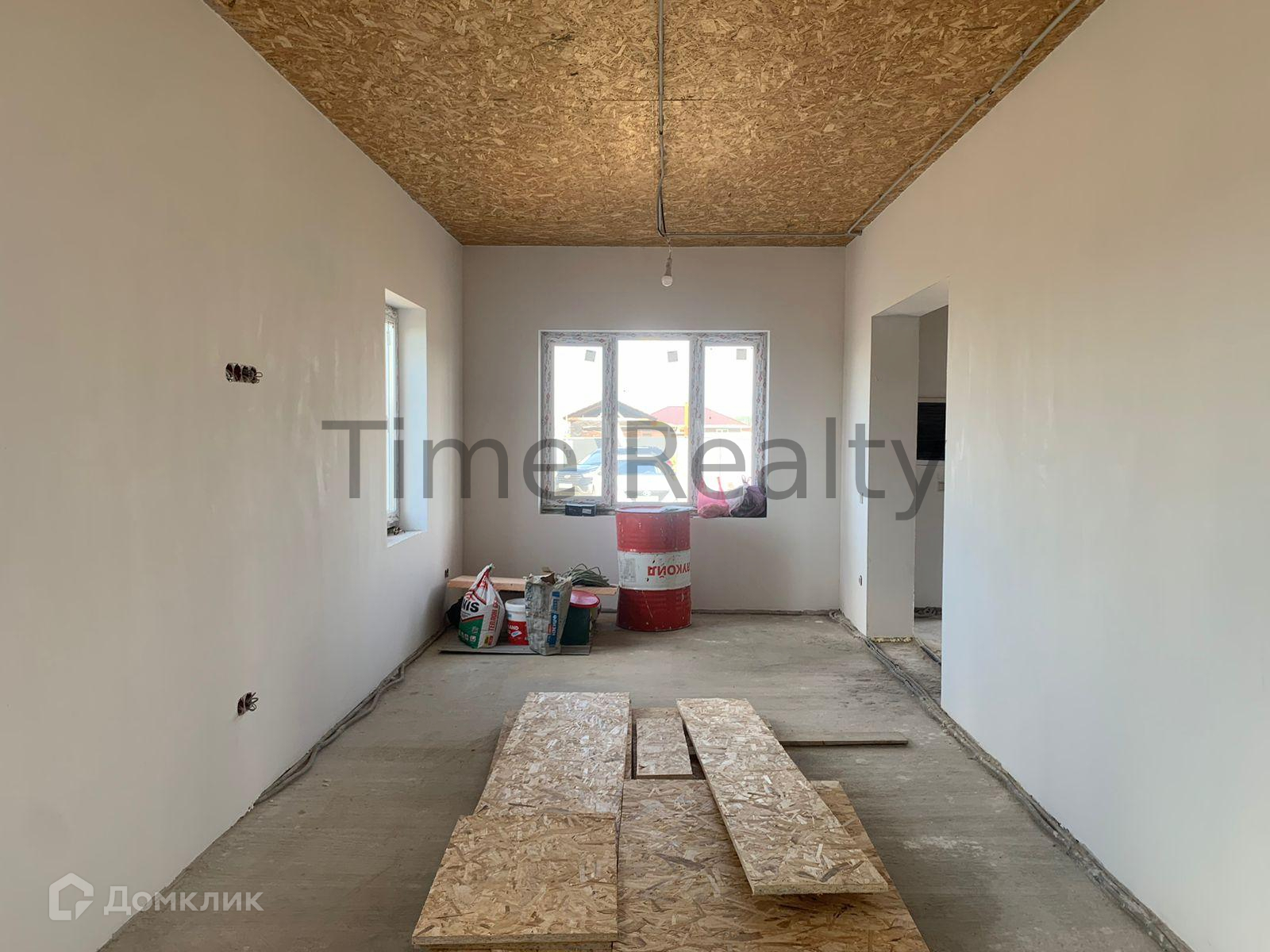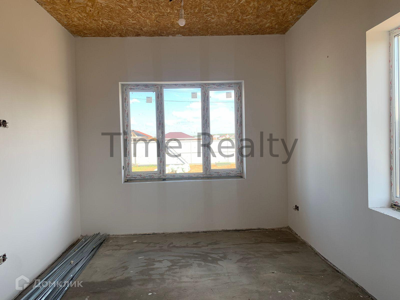 Первый этаж высотой 3,2 метра. На первом этаже расположены кухня-гостиная 26 кв.м. включает кухонную зону, изолированная комната 15,7 кв.м., просторная прихожая 20 кв.м., а также совмещенный санузел 10 кв.м., котельная (помещение под лестницей) 5,4 кв.м.. Удобная широкая бетонная лестница ведёт на второй этаж, на лестничной площадке между 1 и 2 этажами расположено окно.