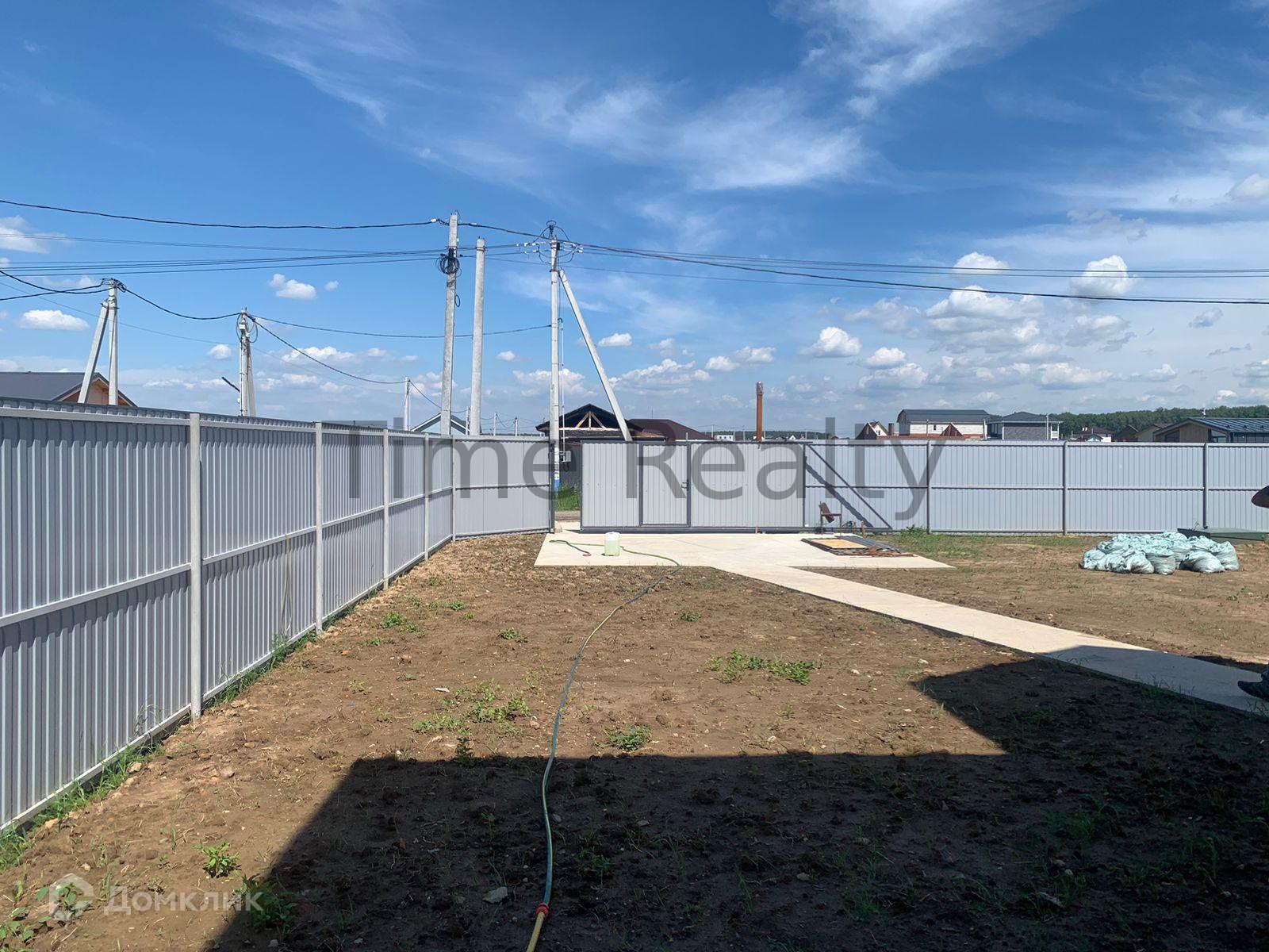 Участок прямоугольной формы, отгорожден забором с автоматическими откатными воротами, имеется бетонная площадка-парковочная зона под 2 автомобиля и бетонная дорожка ведущая к дому.