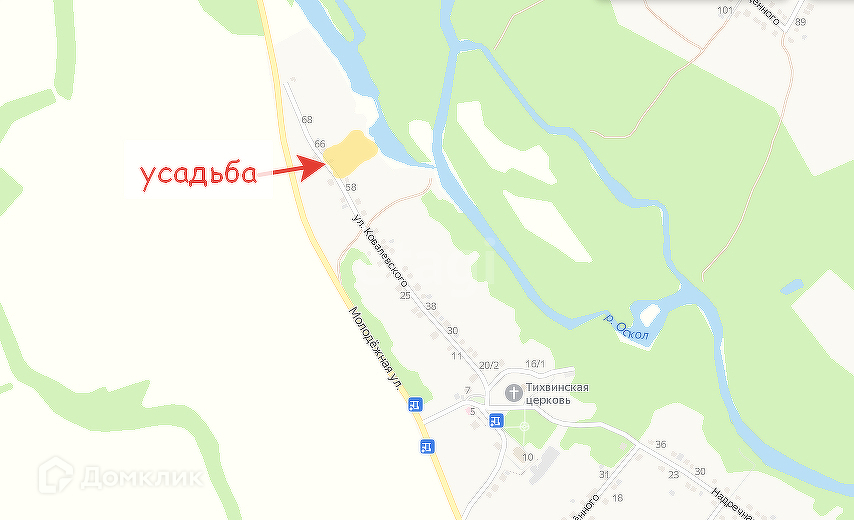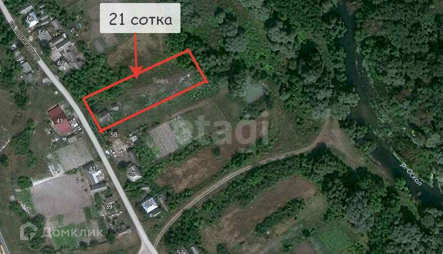 Участок ровный, широкий, прямоугольной формы, граничит с рекой Оскол.