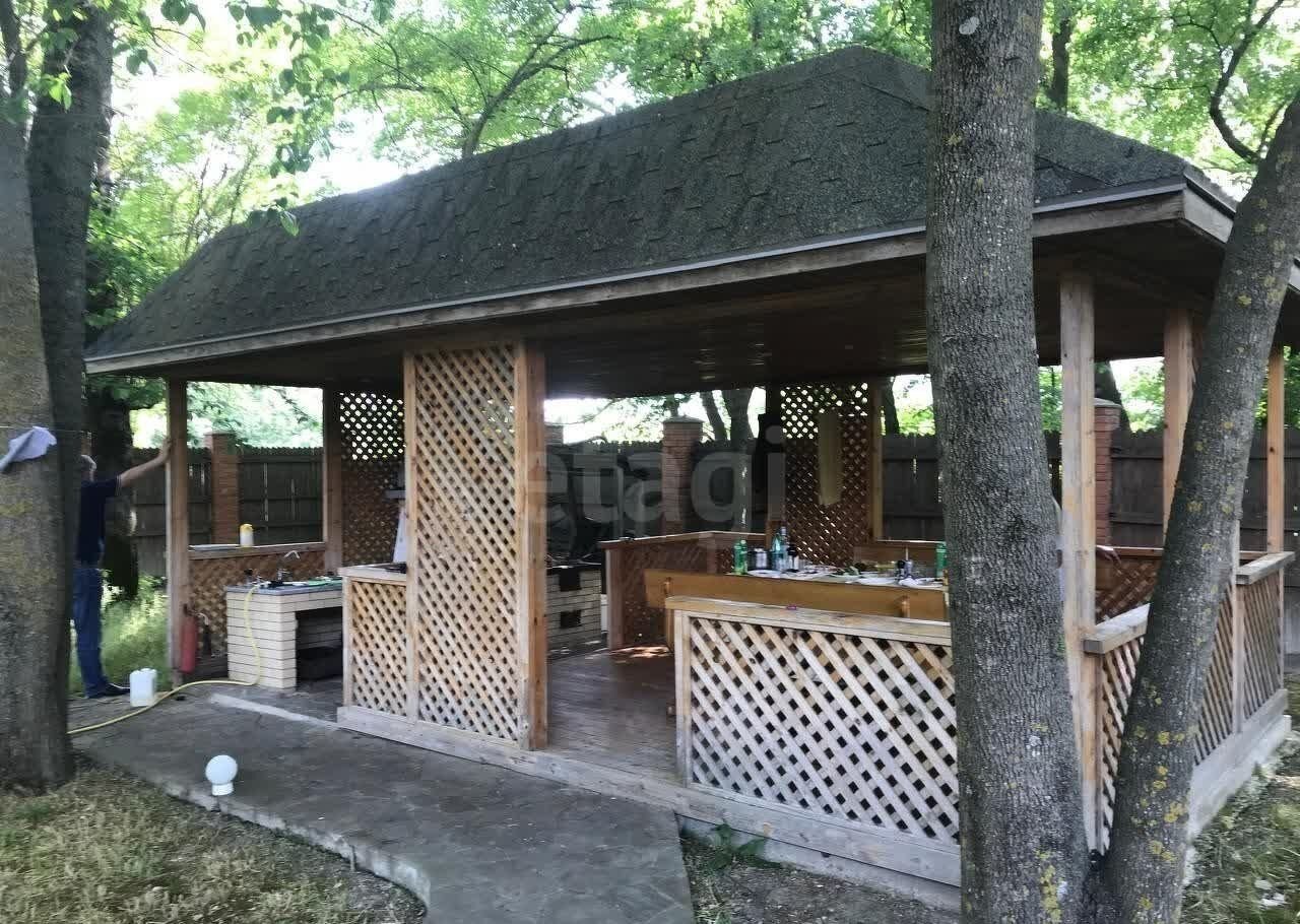На участке расположена барбекю зона, хозблок и навес для двух машин.