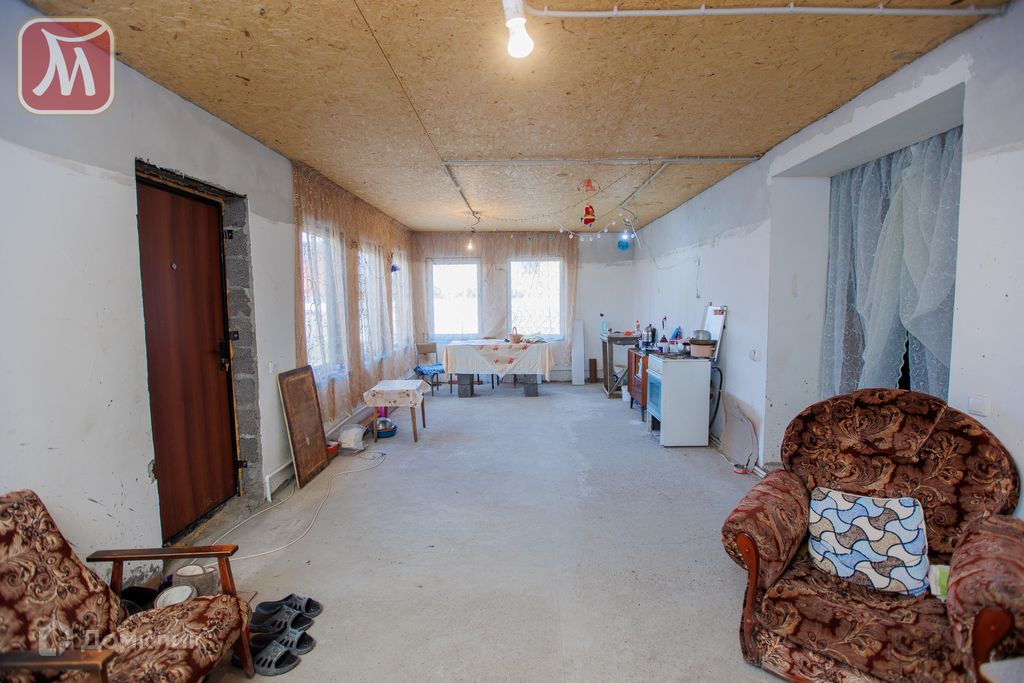 Стены оштукатурены и отшпаклеваны, пол – бетонная стяжка, установлена входная дверь, в доме полностью разведена электропроводка, теплые полы во всем доме.