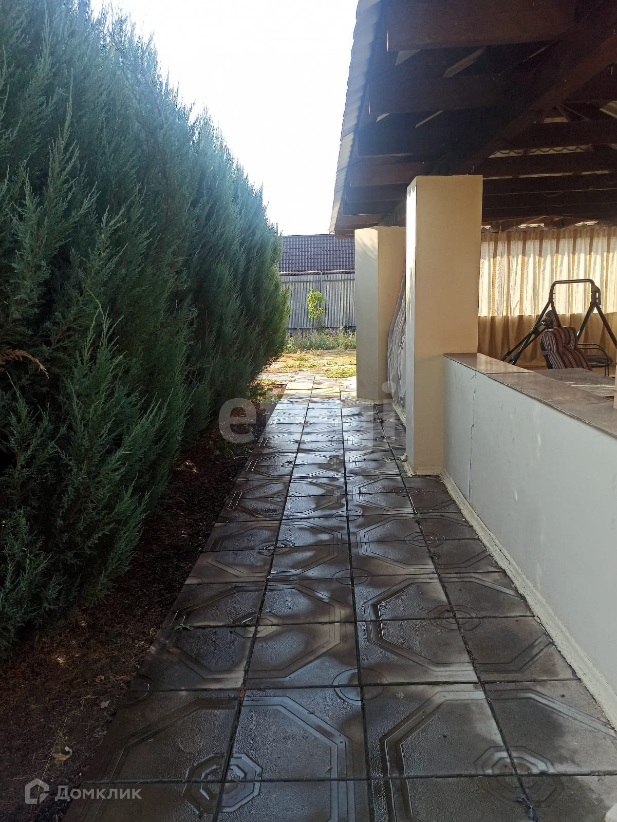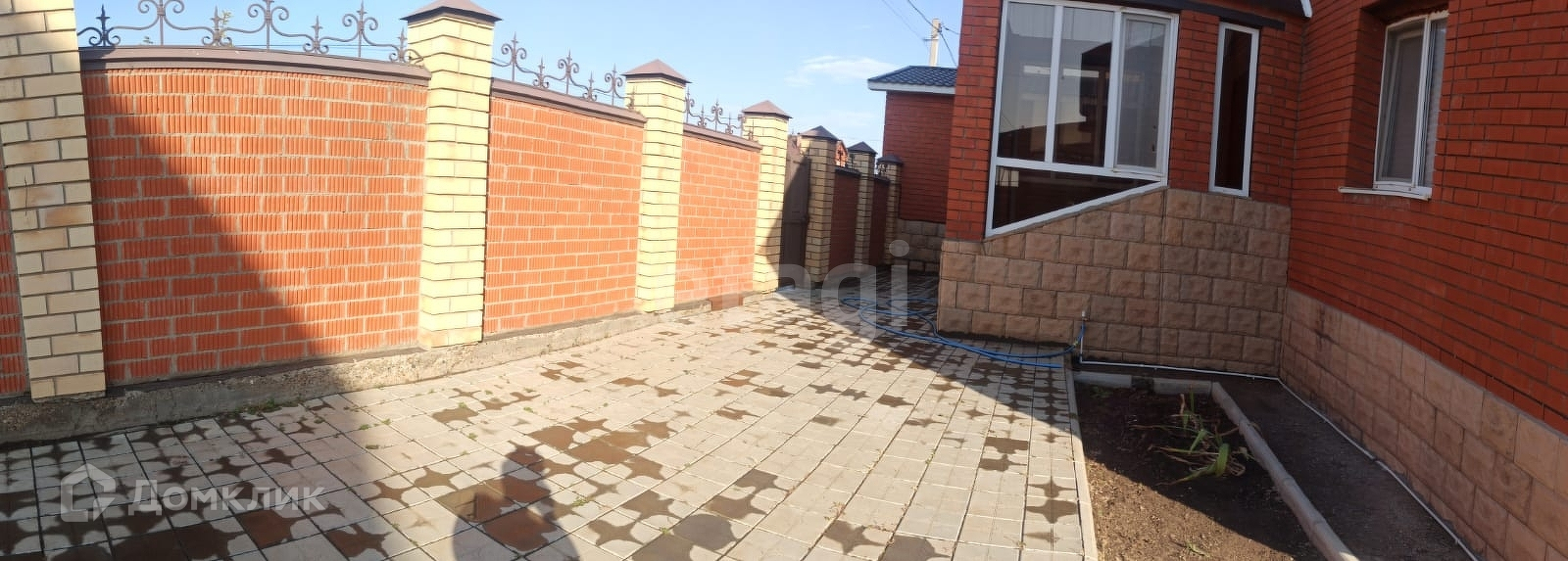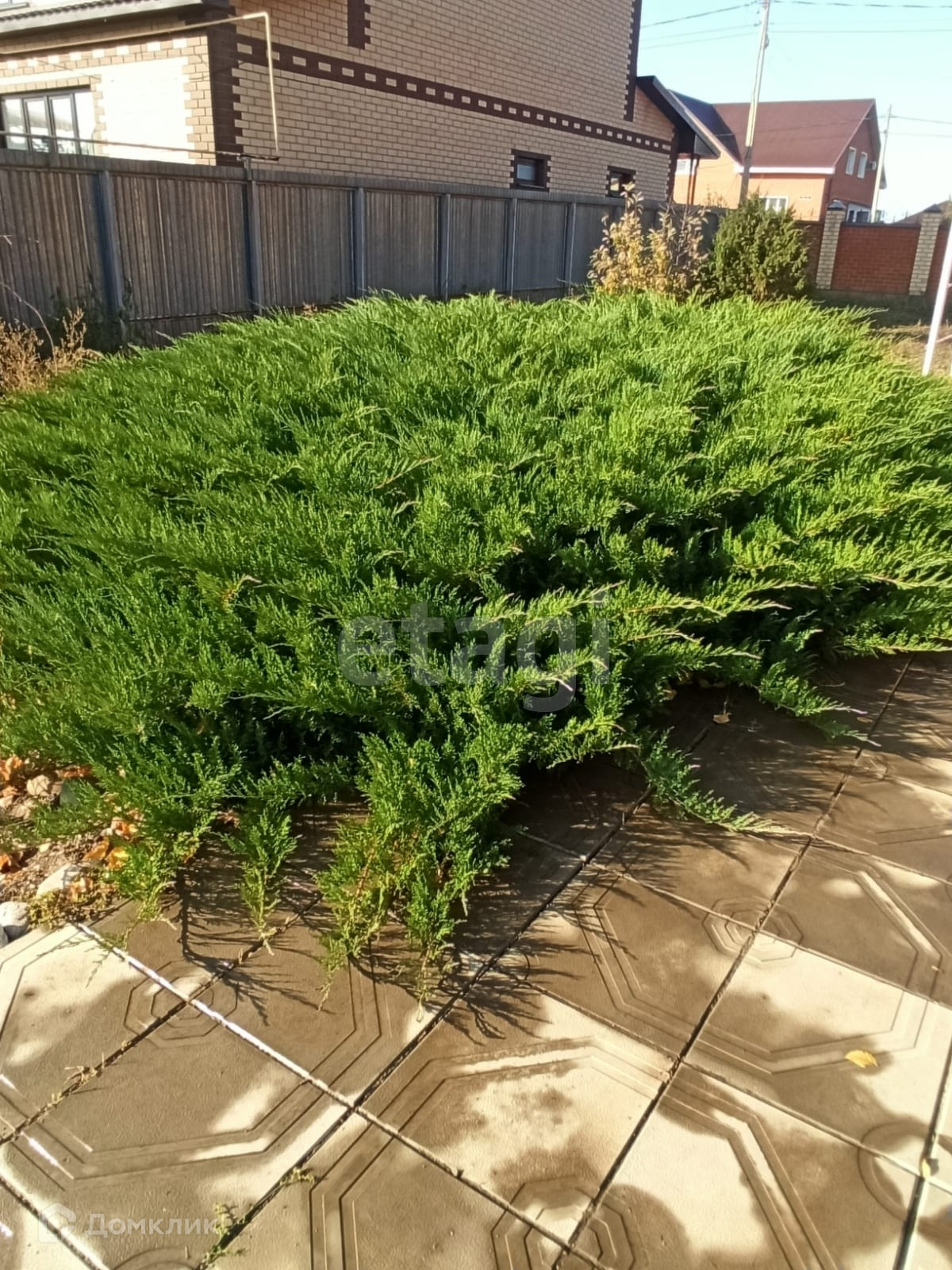 Во дворе уложена тротуарная плитка.