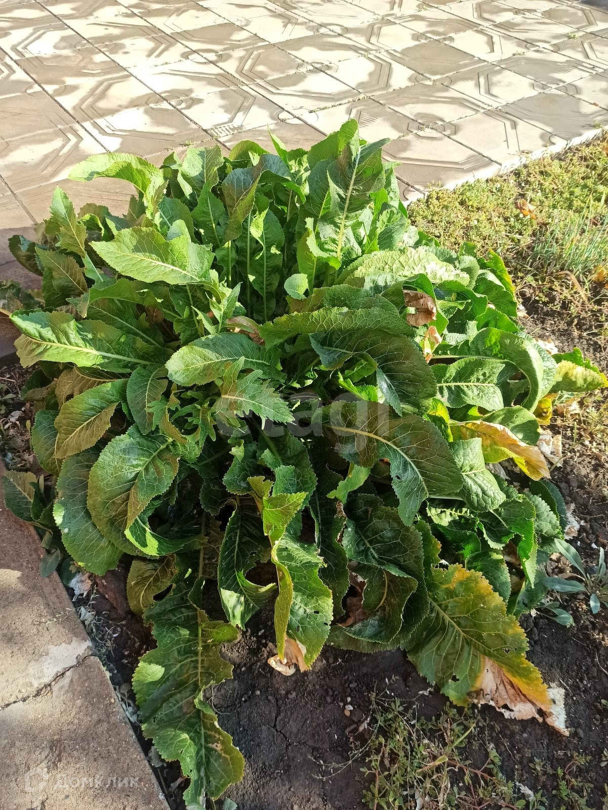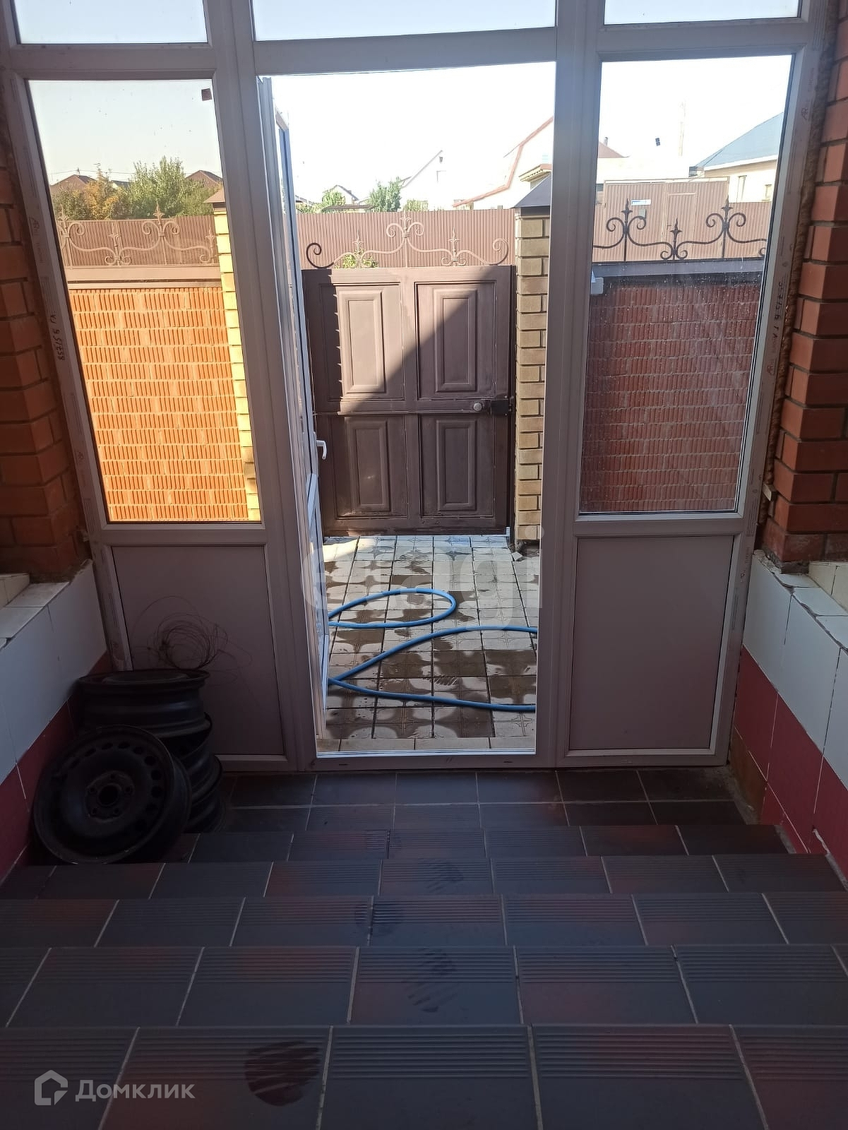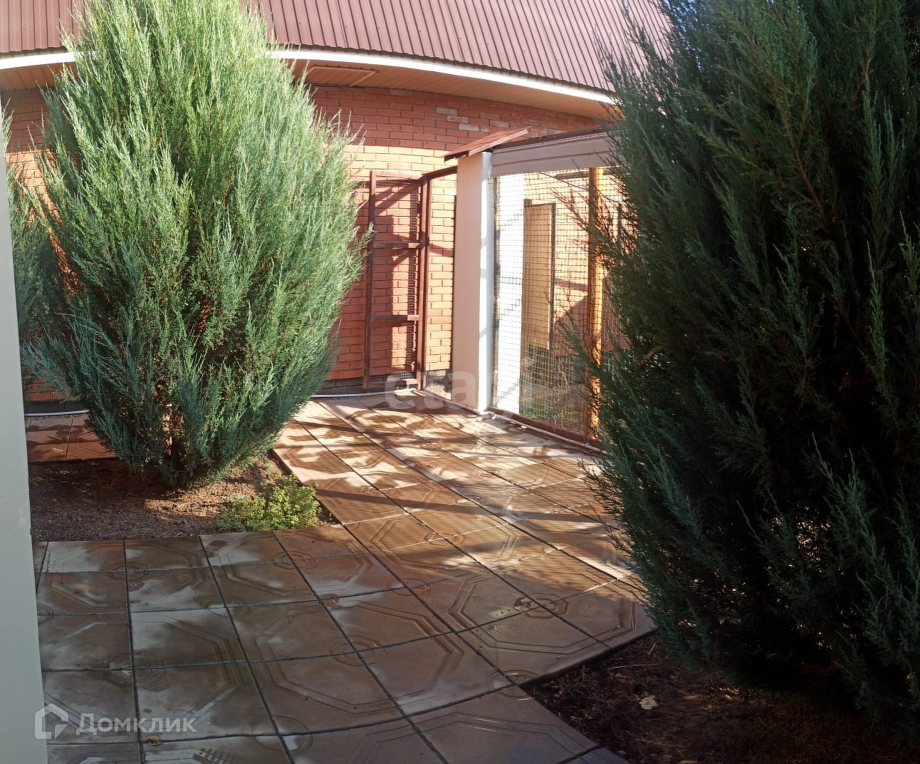 Во дворе уложена тротуарная плитка.
