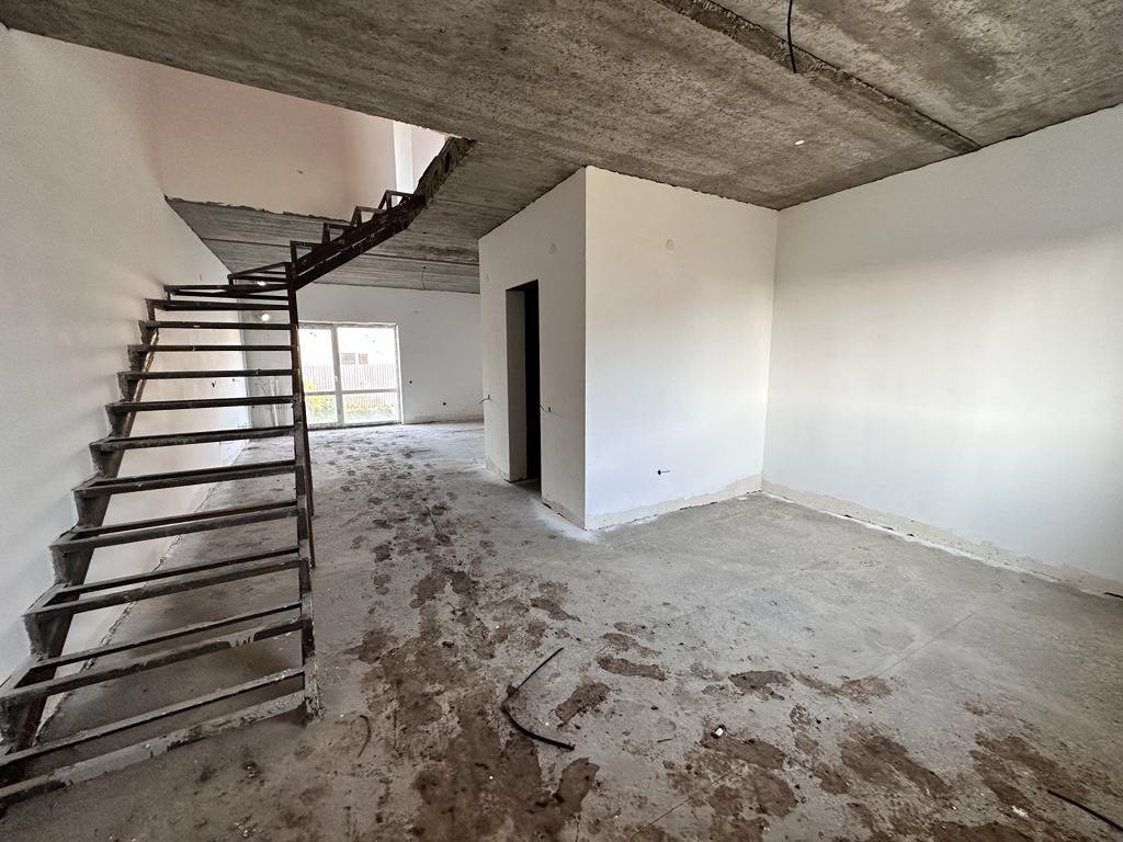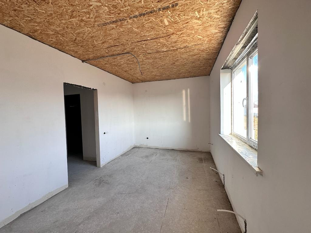 Продаётся просторный таунхаус с земельным участком площадью 3 сотки от застройщика. Общая площадь дома составляет 102 квадратных метра. На первом этаже находится санузел, просторная кухня-гостиная с панорамным окном, которое ведёт на террасу во дворе. На втором этаже расположены 3 спальни и гардеробная. Стены дома выполнены из керамзитоблоков с утеплителем, фасад покрыт кораедом, а крыша выполнена из металлочерепицы.