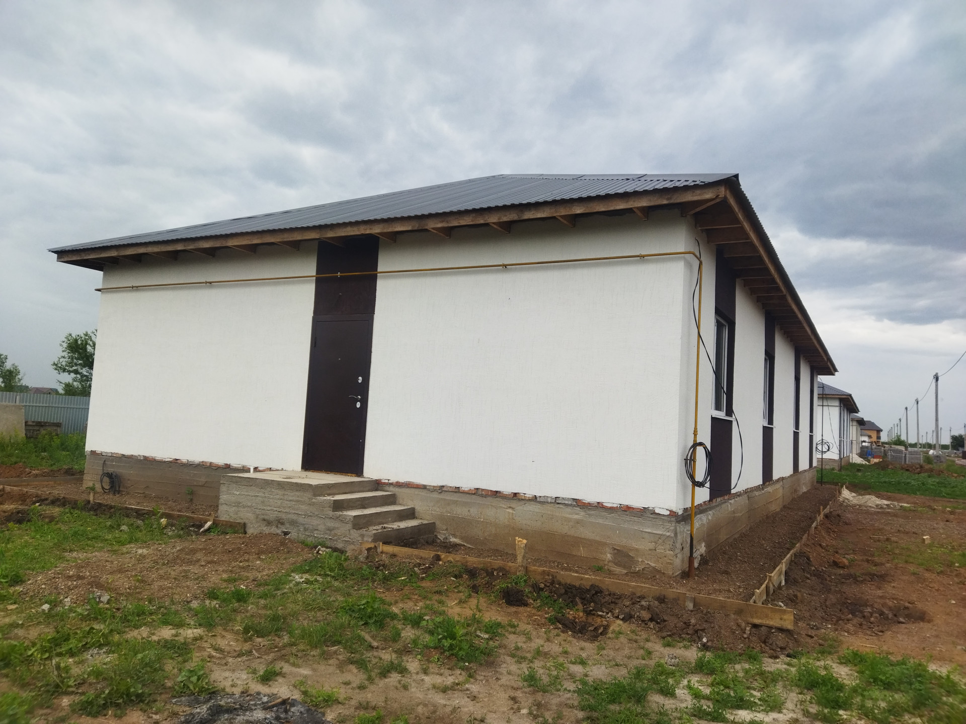 В доме все коммуникации заведены, вода, свет, газ, канализация ( 3 кольца), проложен теплый пол, установлены дополнительно радиаторы отопления, стены оштукатурены и отшпаклеваны и готовы к поклейки обоев, большие светлые окна в комнатах.