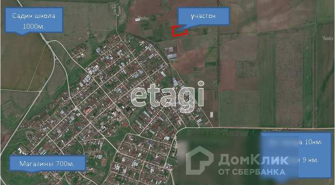 Поле, без построек и насаждений, расположено в 900 м от села.