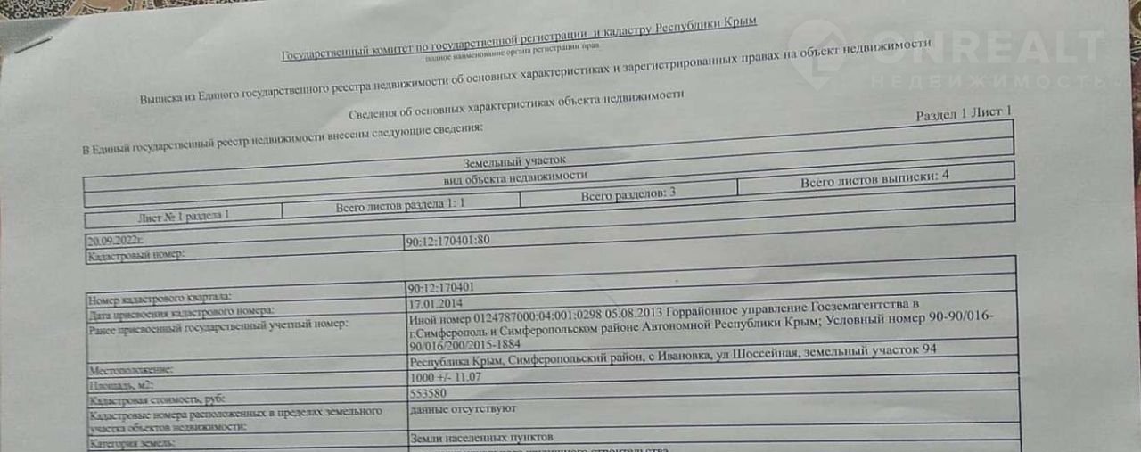 Продам участок 10 сот. В Симферопольском районе, село Ивановка, улица Шоссейная, земельный участок 94.