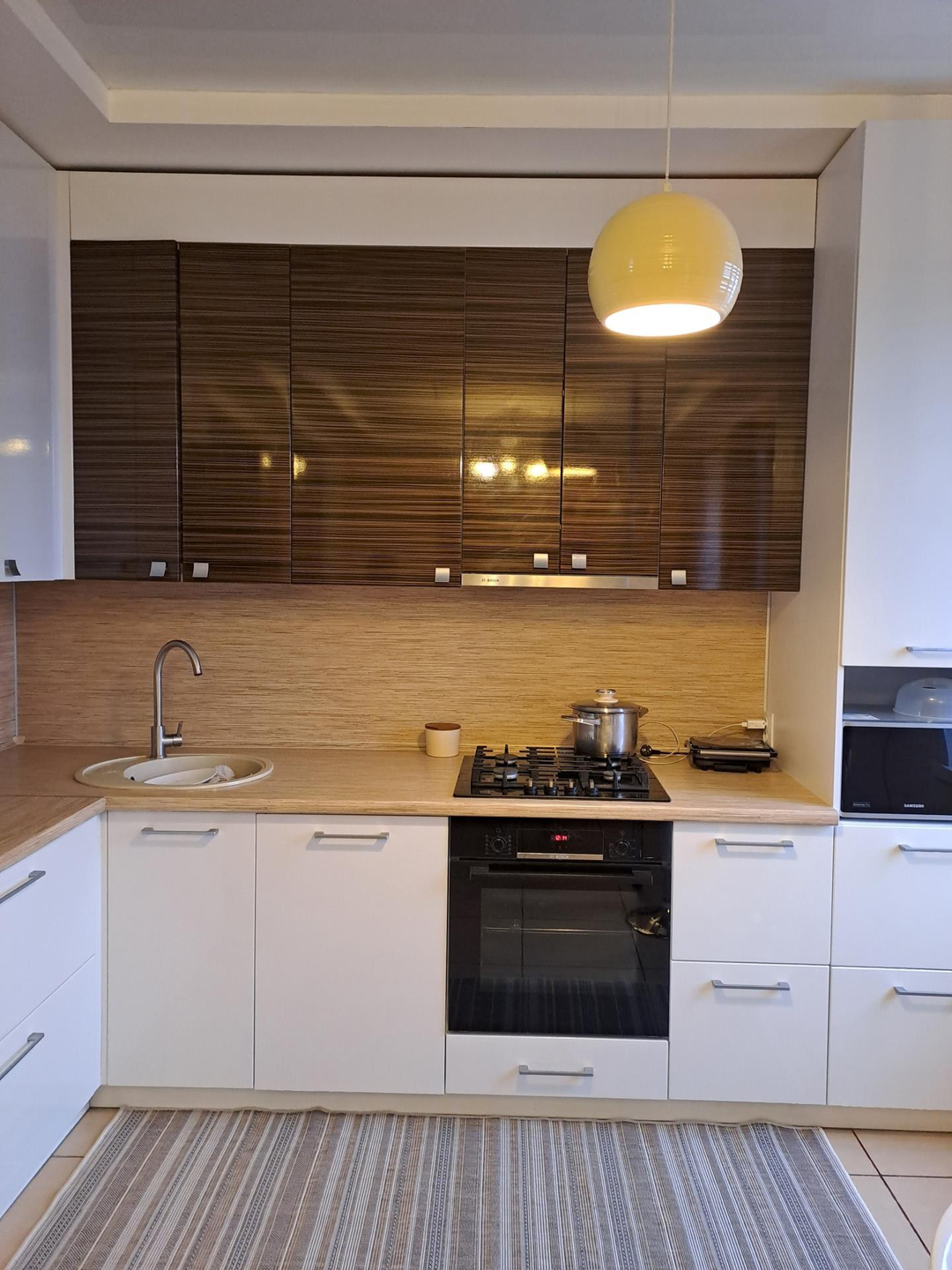 На первом этаже расположены: входная группа и котельная, прихожая, санузел, просторная кухня-гостиная с зонированием и уютная спальня. По договоренности, новым собственникам оставят отличную обеденные группу, выполненную из натурального дерева, качественный и практичный кухонный гарнитур и встроенную технику! На втором этаже расположены две просторные, изолированные спальни и несколько встроенных, современных систем хранения, которые остаются новым владельцам в подарок! Система теплых полов по всему периметру первого этажа.