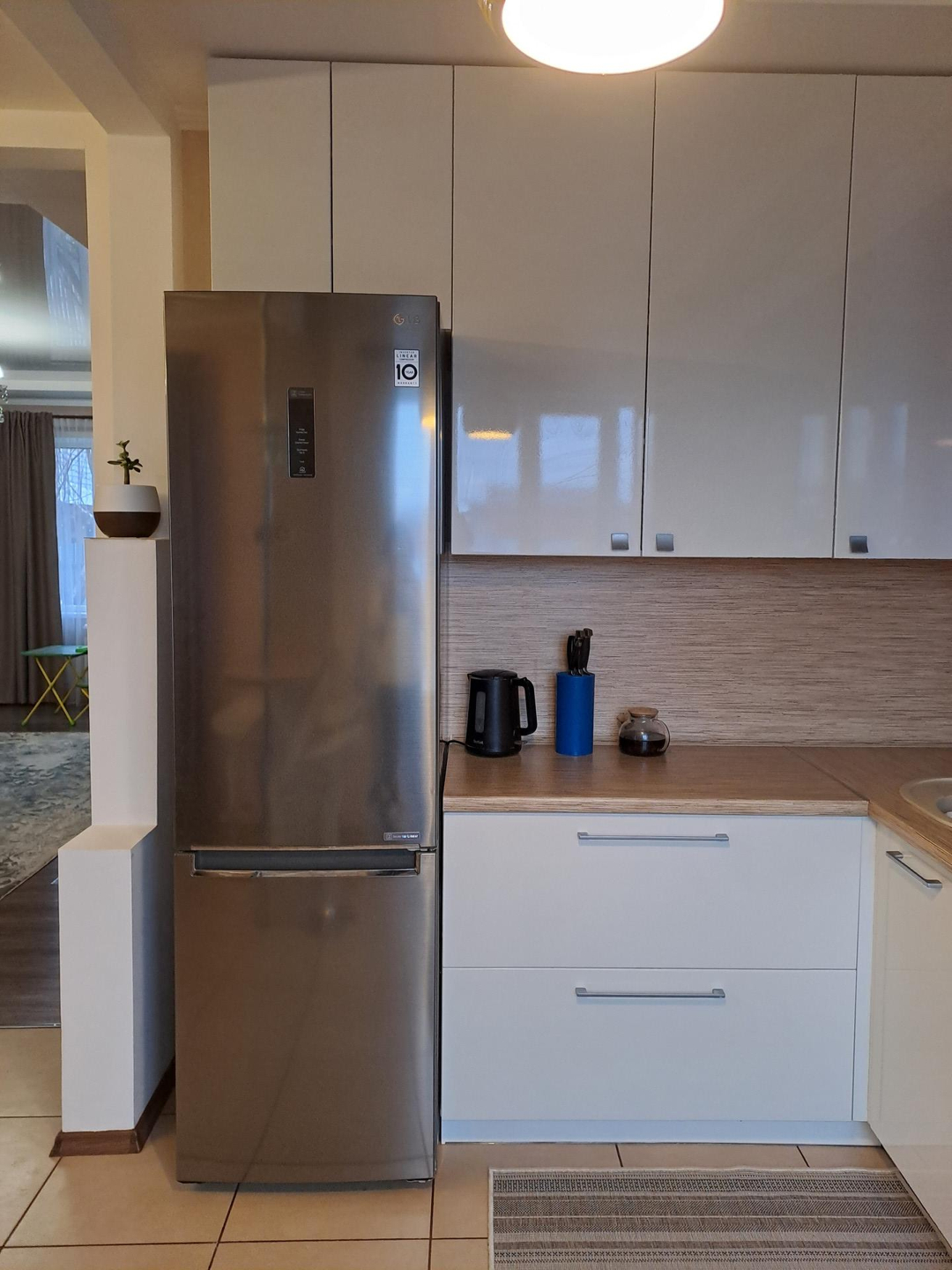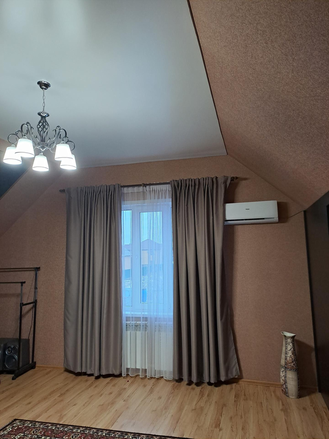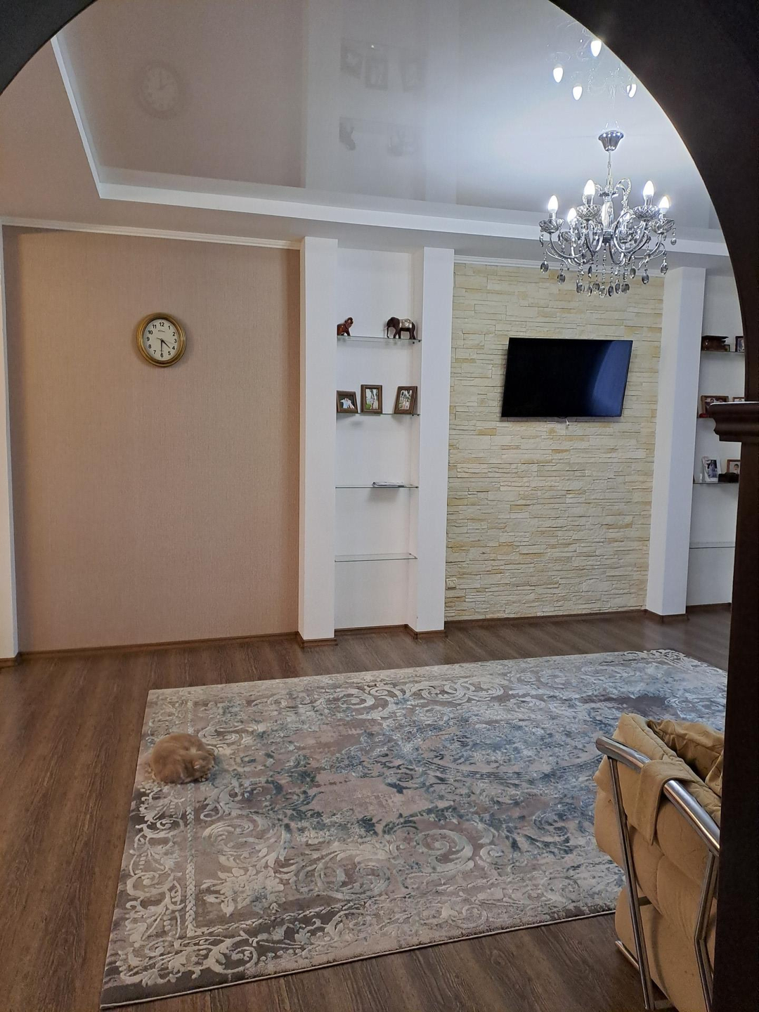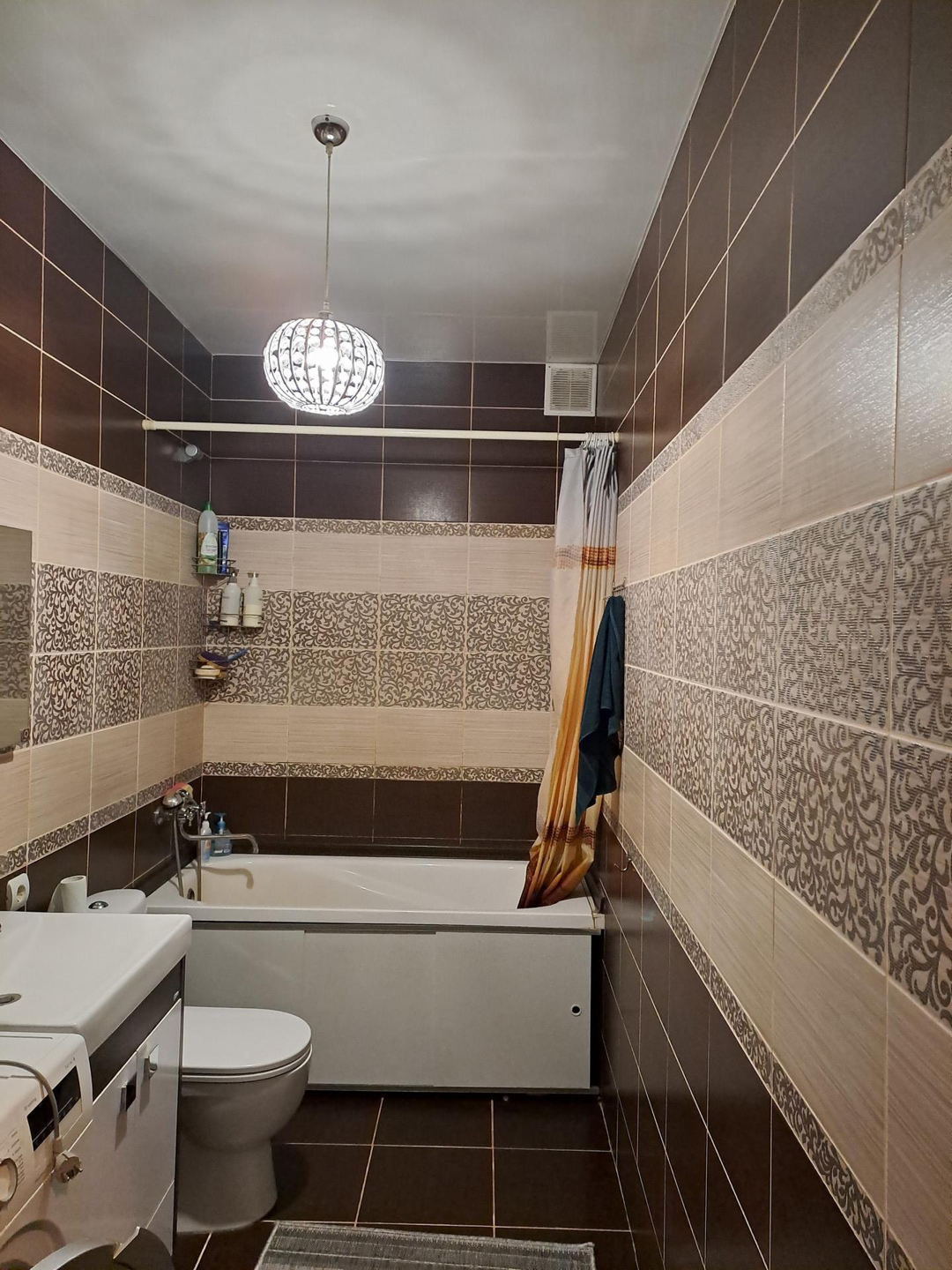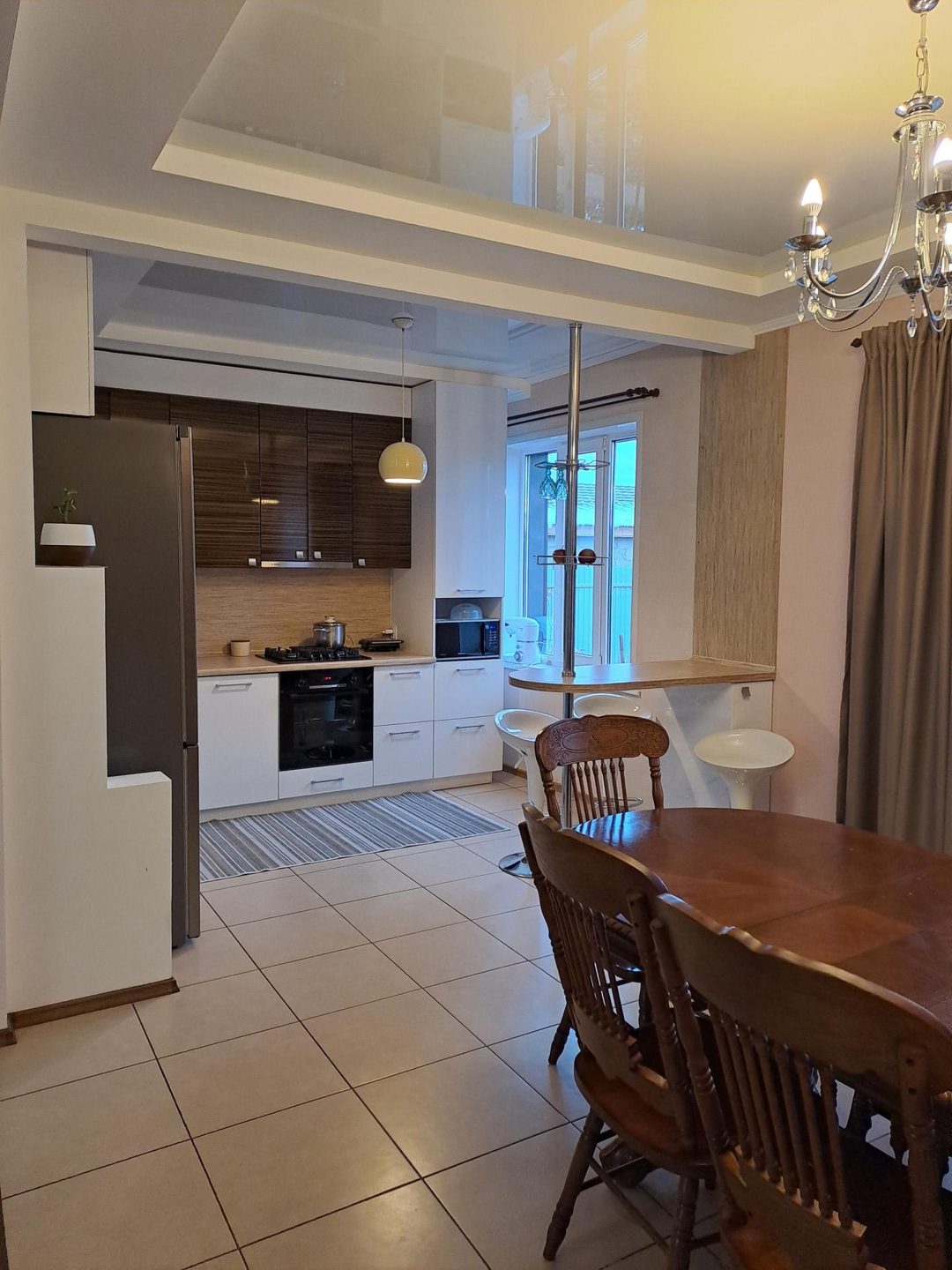 Ремонт выполнен в спокойных, светлых тонах, вся отделка из качественных, дорогих материалов. В санузле установлена качественная сантехника, положена плитка высокого класса, фото не передает всей красоты) Лестница на второй этаж выполнена из натурального дерева, очень удачно вписывается в интерьер дома. На полах ламинат 33 класса.