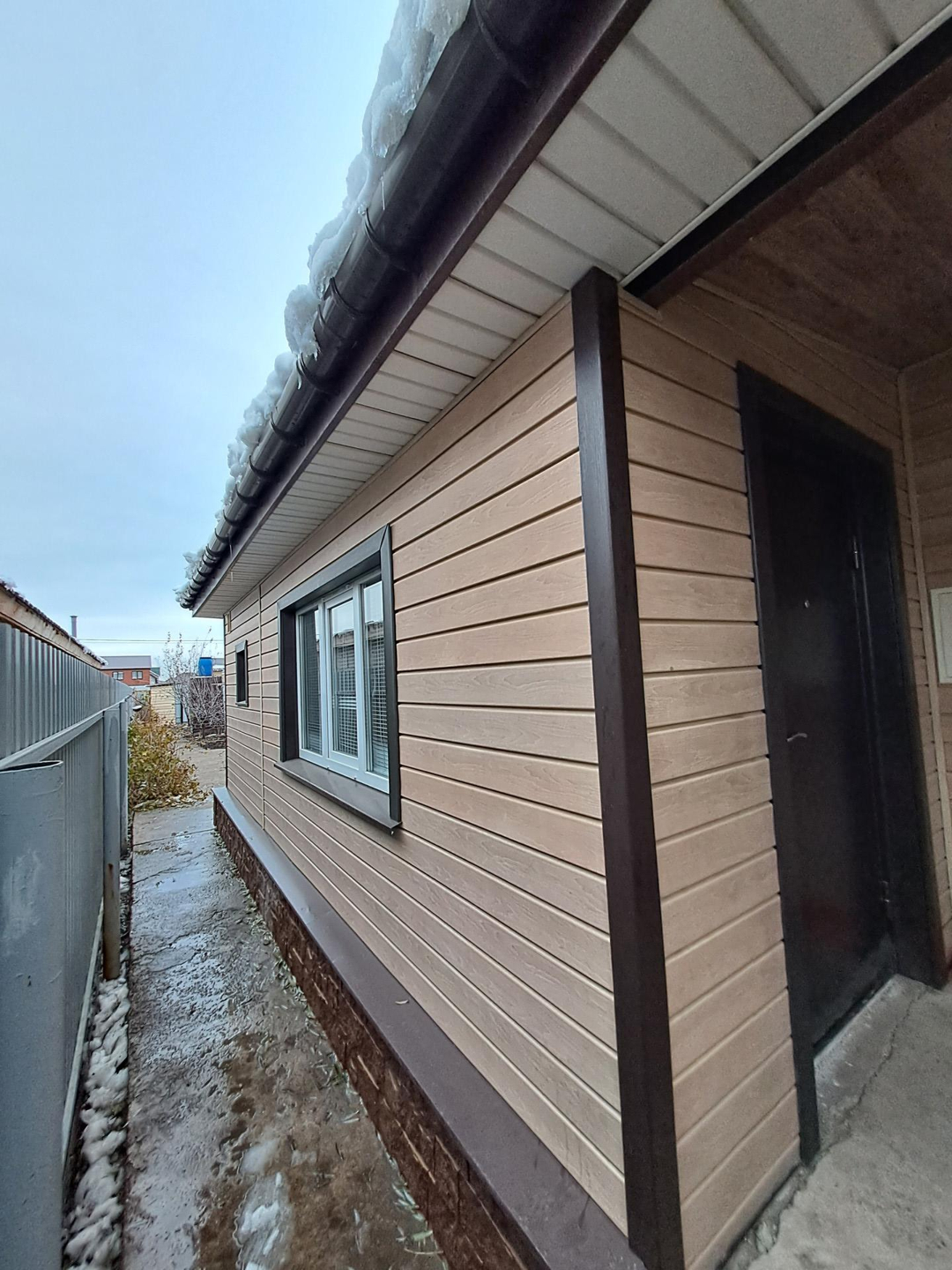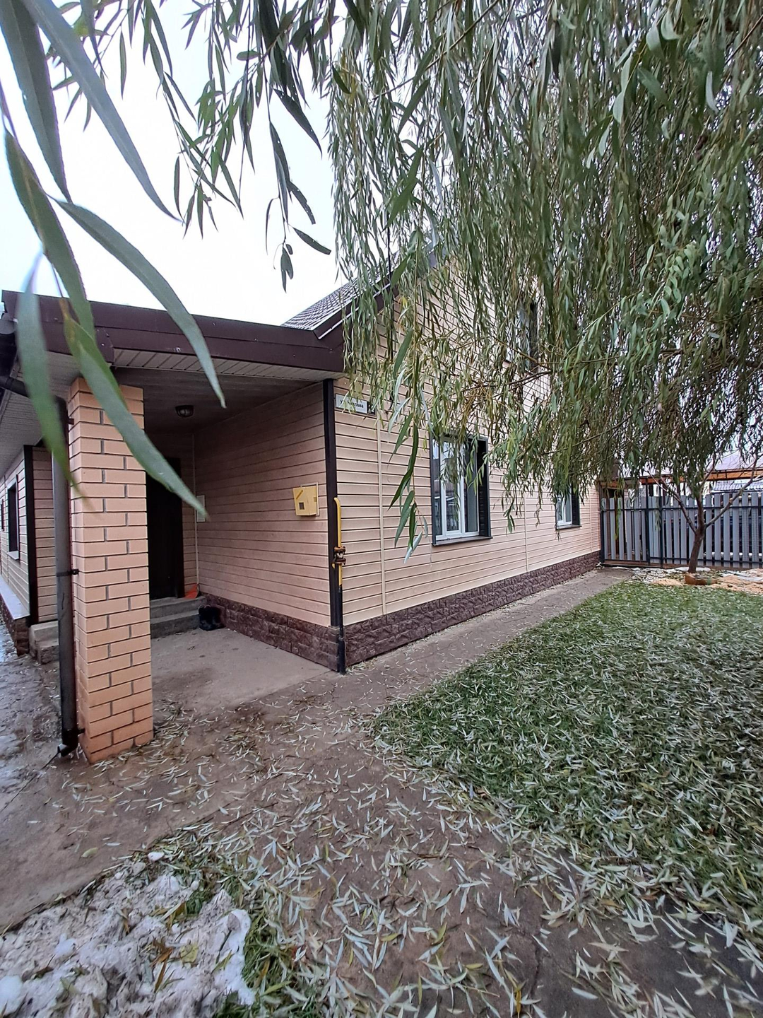 Дом построен в 2014 году, стоит на свайном фундаменте, высотой более 70 см. Стены выполнены из пенобетона + 10 утеплитель, облицован качественными сайдинг панелями. Установлены высококачественные пластиковые окна. Крыша имеет гидро и теплоизоляцию, перекрыта металлочерепицей.