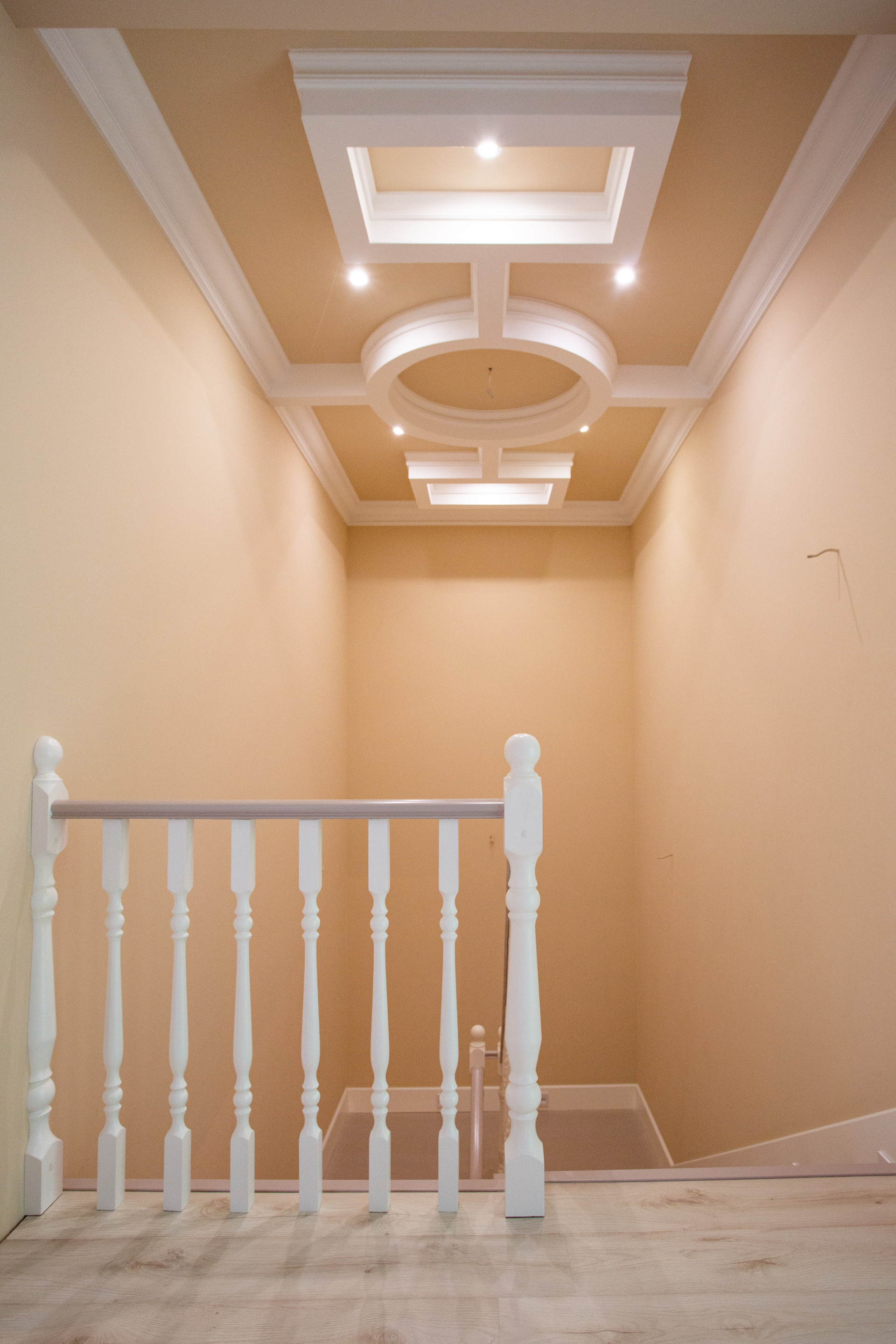 - лестница из бука с балясинами с подсветкой на движение