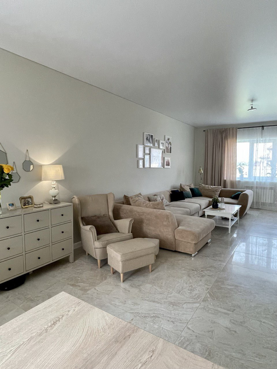 кухня гостиная (50 кв.м.) с выходом на балкон, коридор, гостевой санузел, прихожая, топочная-кладовая.
