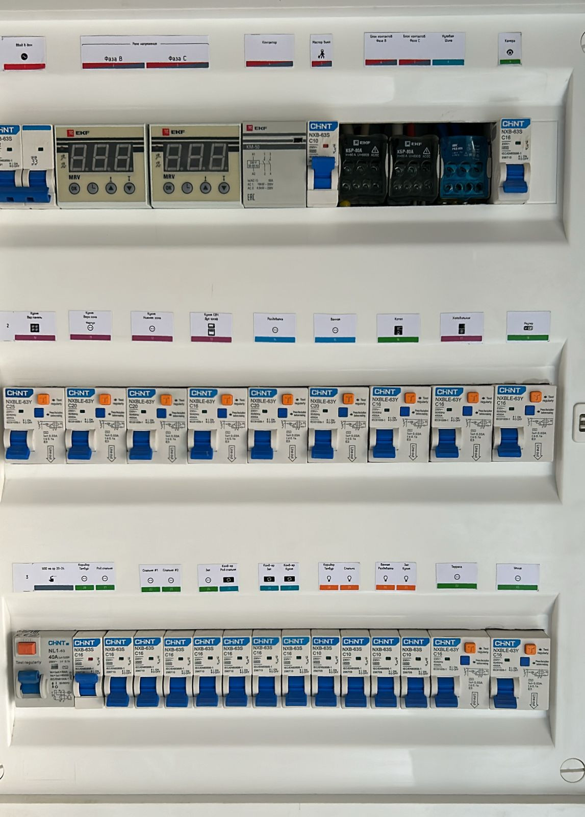 Электрика - выполнена по всему дому (не жалели) есть мастер выключатель, реле напряжения, заведены 3 фазы (2 фазы на дом + отдельная фаза на гараж). На каждый потребитель установлен УЗО автомат.