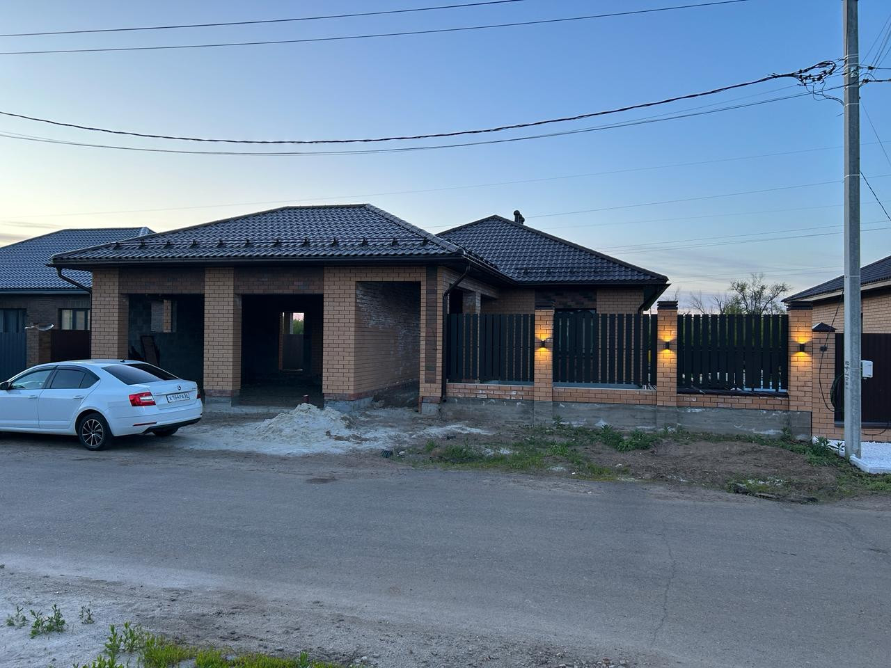 Выполнено освещение с датчиками света на наружнем заборе и датчиками движения и света во входной группе.