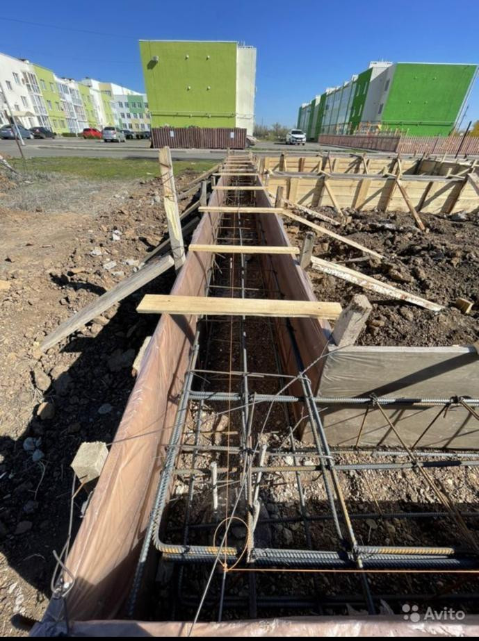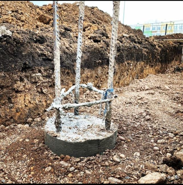 -Фундамент ленточный ростверк на раскатных сваях от 3 до 6 метров глубиной.