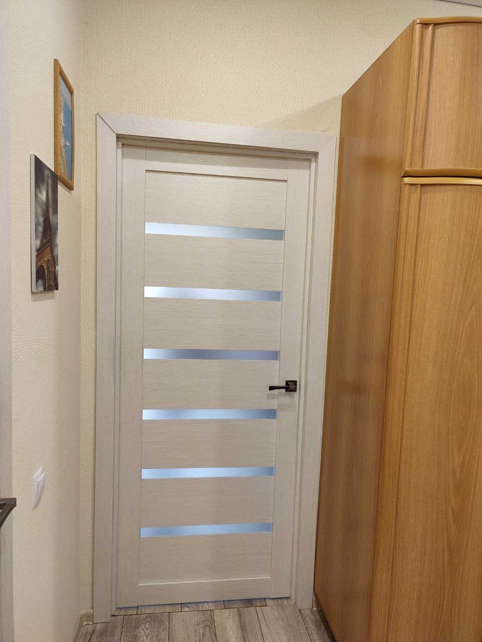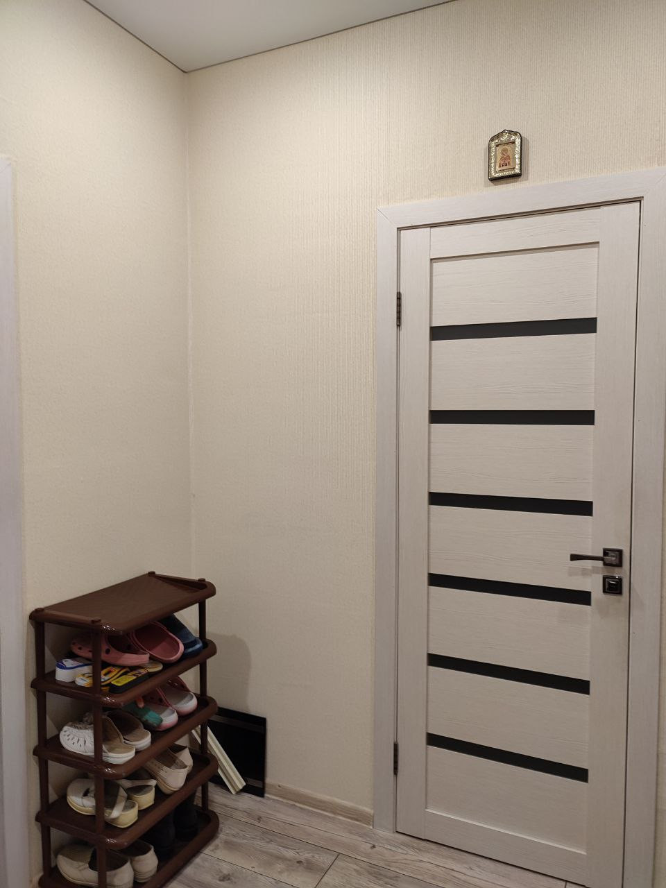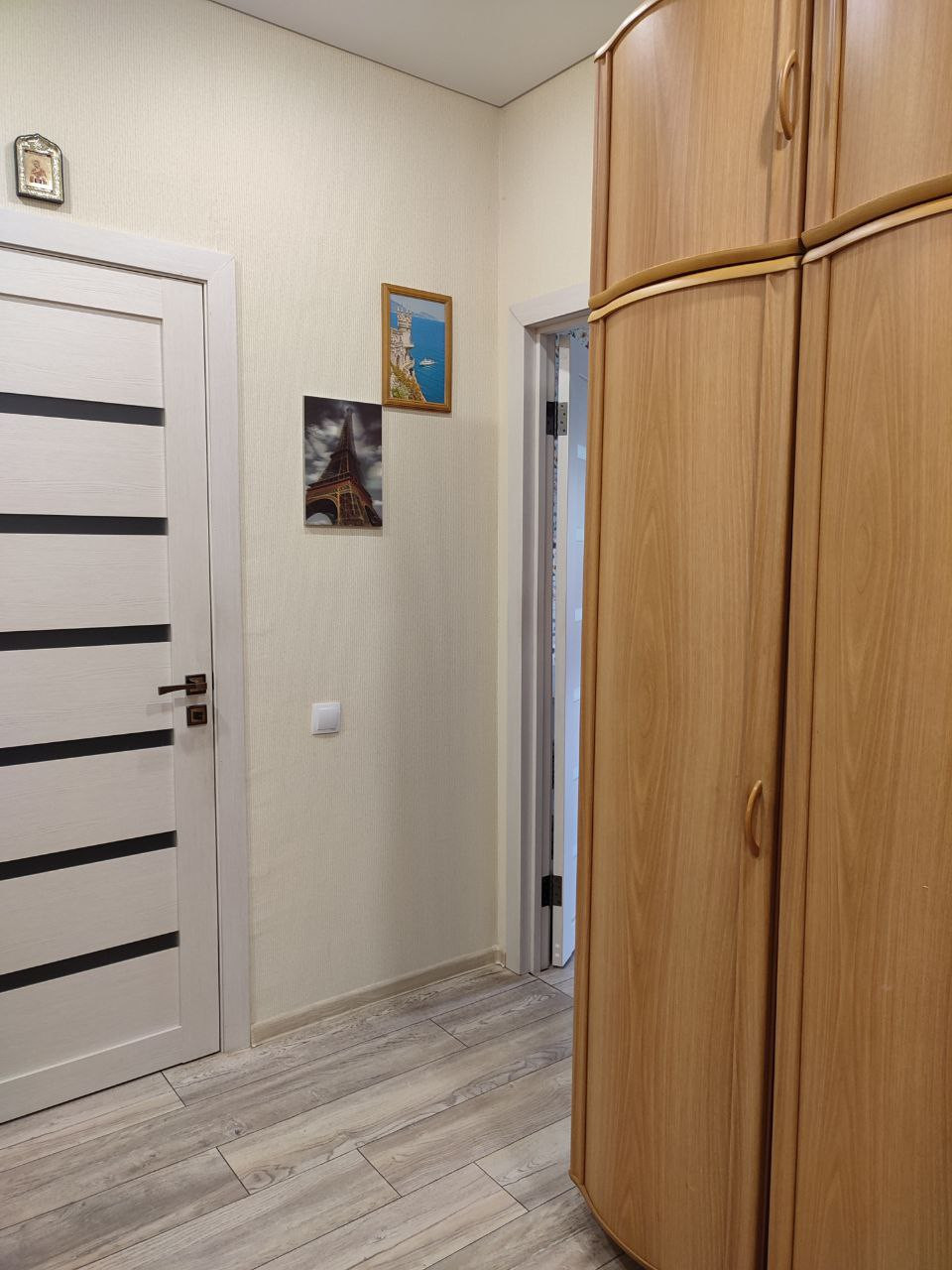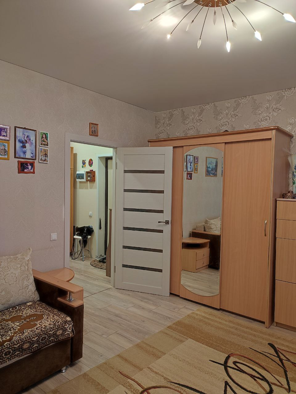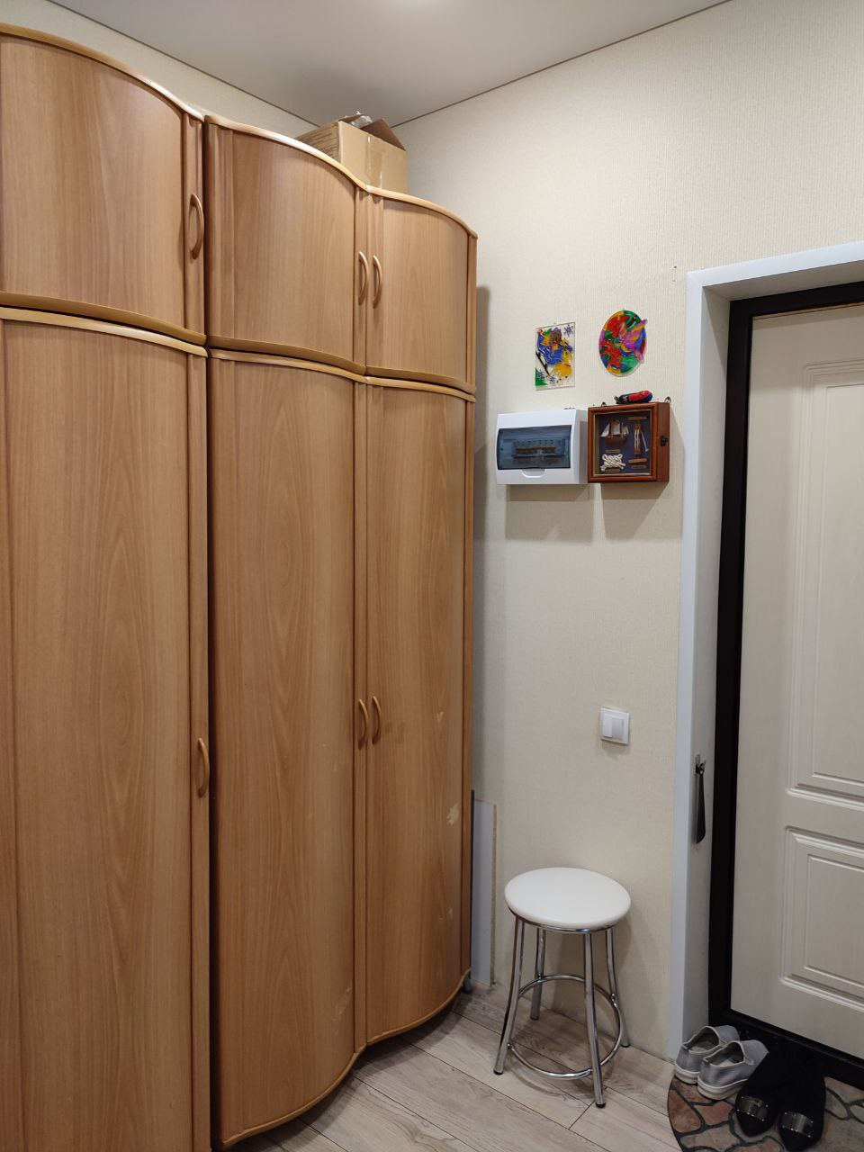 Просторная прихожая, кухня и спальня разделены коридором. Санузел совмещенный.