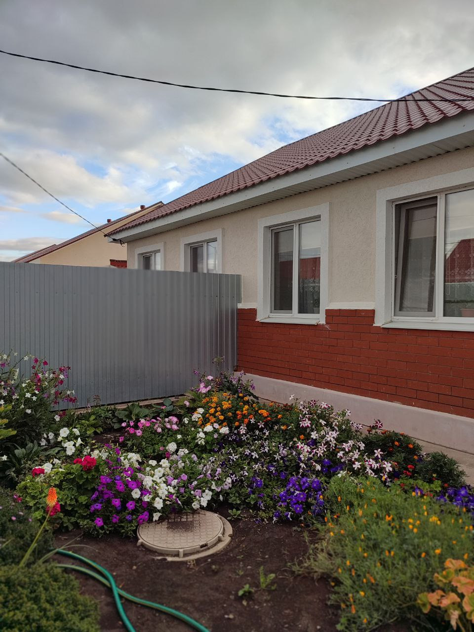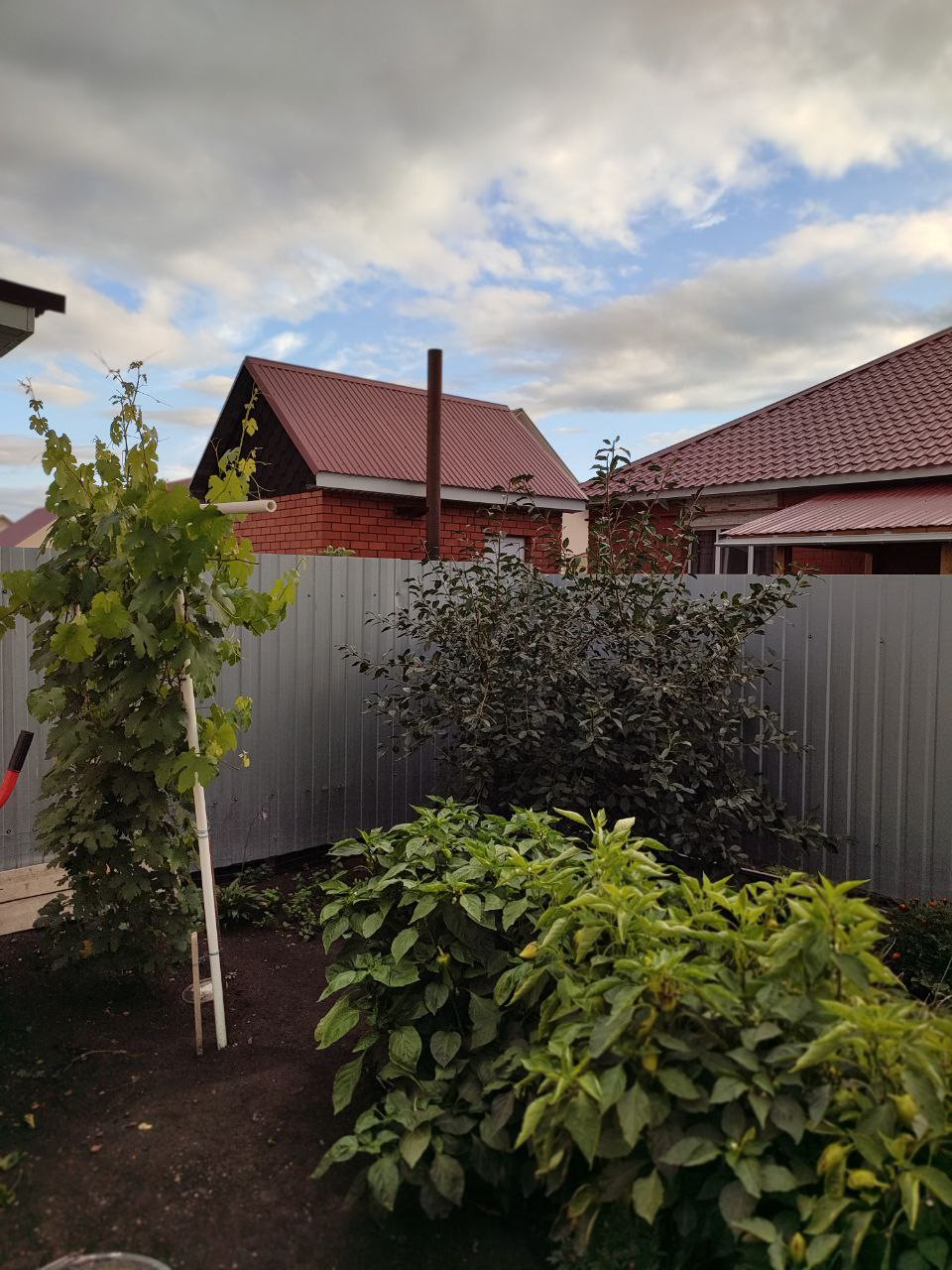 Дом огорожен забором из профлиста по периметру. На земельном участке имеются плодовые насаждения (яблони, вишня, виноград). В сад выведена вода для полива.