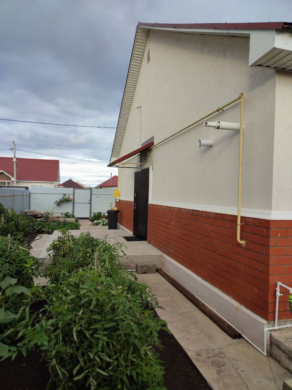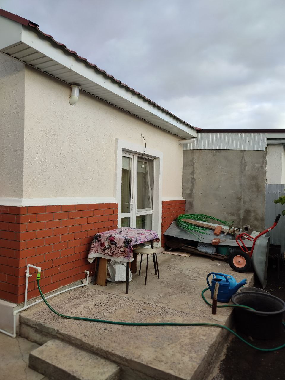 С лицевой стороны дома забетонирована площадка под веранду (возможно утеплённую), а с обратной стороны дома залита из бетона площадка под строительство террасы. Выход на террасу из кухни.