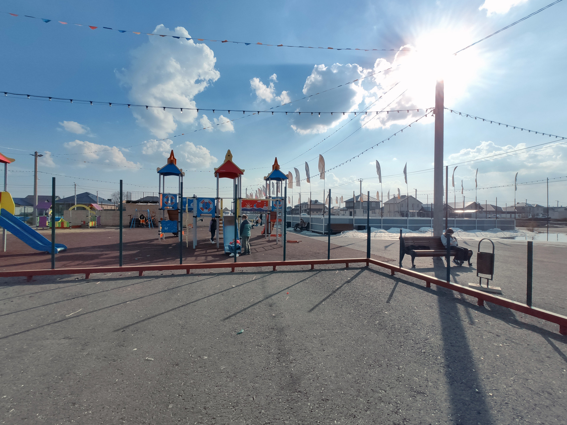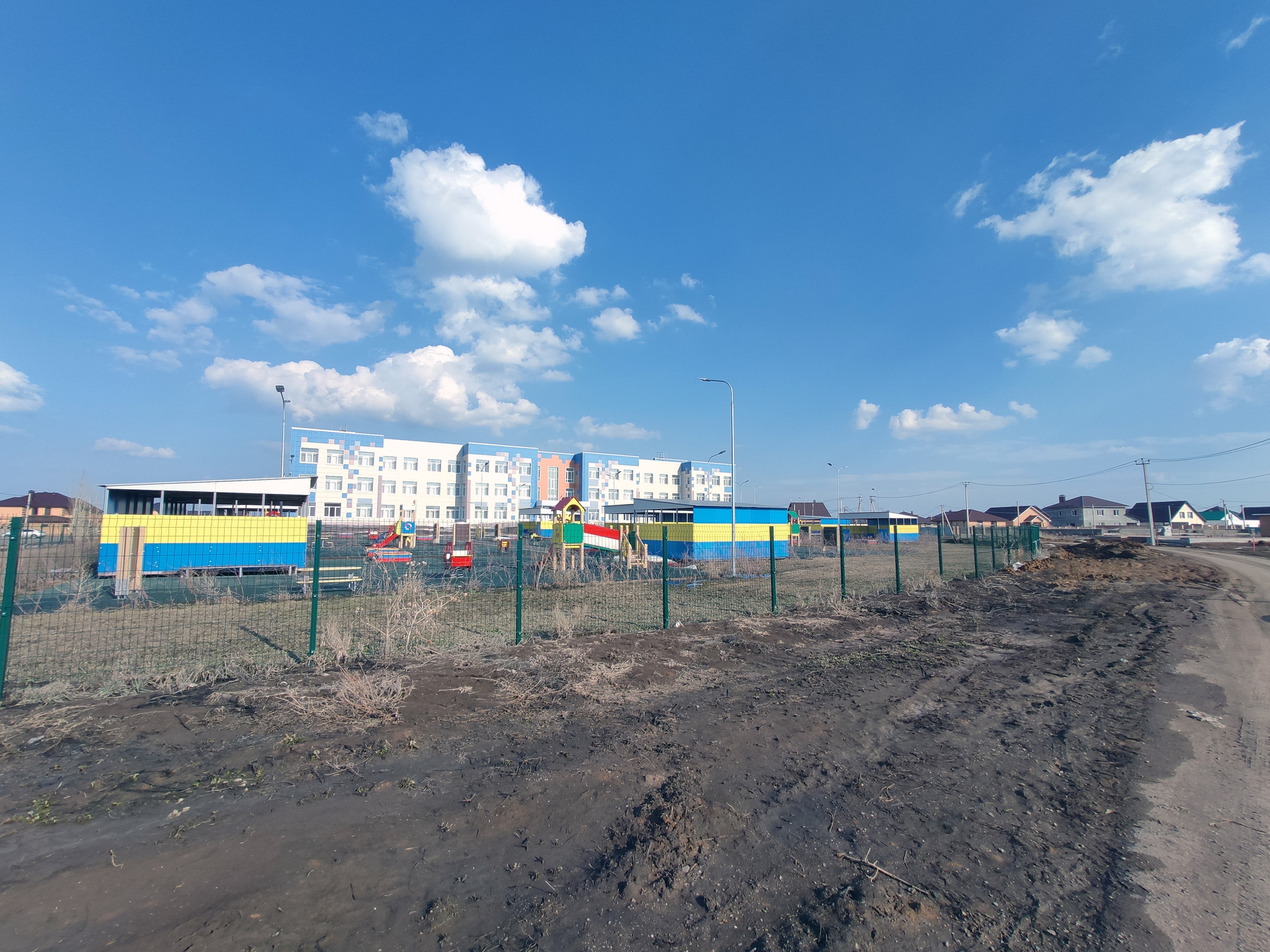 Посёлок расположен в очень удобном месте. Всего в 400 метрах от участка находится новый детский сад, что сделает пребывание здесь особенно комфортным для семей с маленькими детьми. Также всего в 100 метрах от участка находится спортивное пространство, включающее в себя детские площадки, скейт-парк, парк аттракционов и площадку для хоккея.