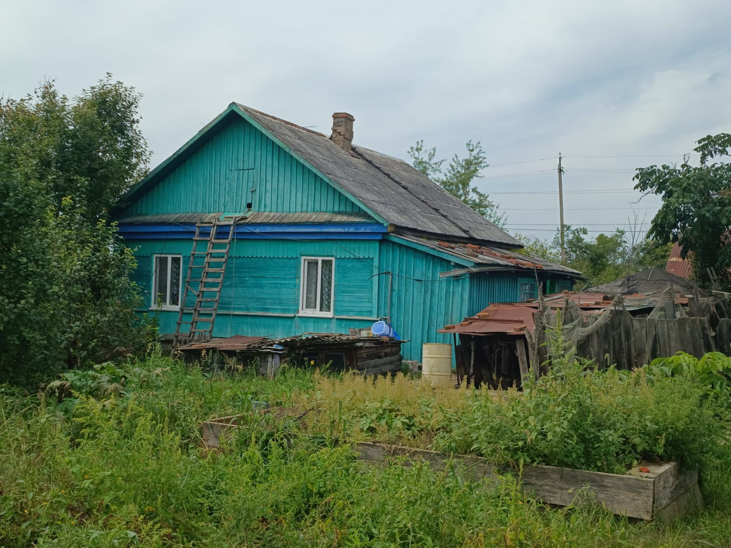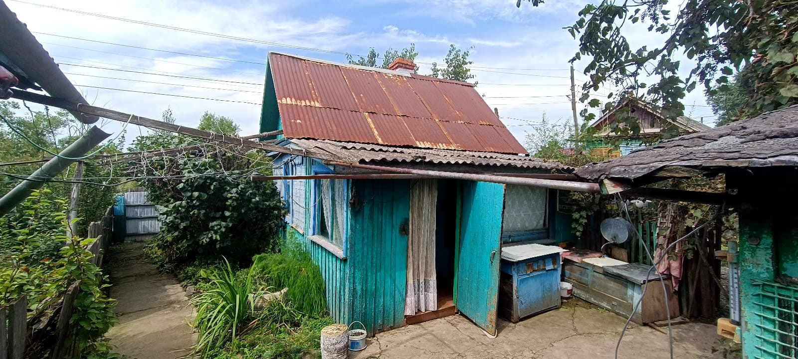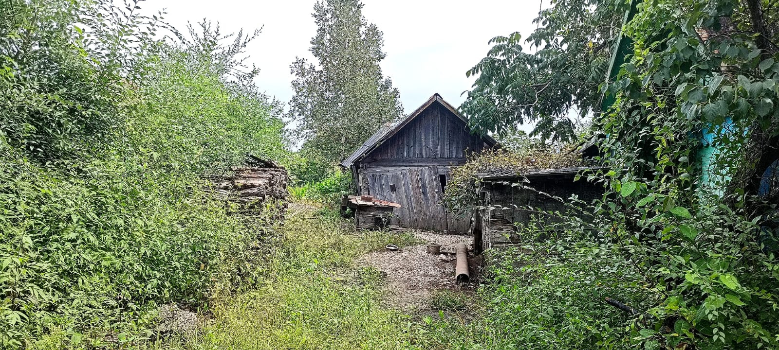 На участке есть баня, во дворе летняя кухня, дровяник