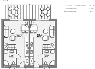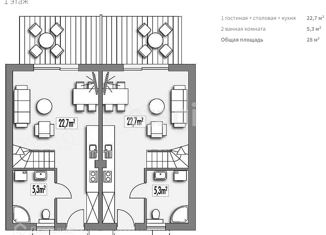 1 этаже: спальня, с/у, кухня-гостиная...