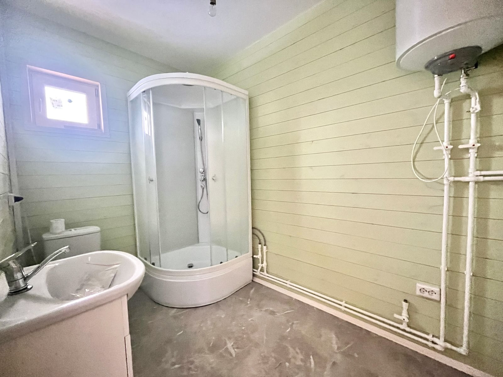 Коммуникации: свет 15 квт, скважина, септик, водяной теплый пол, залита стяжка