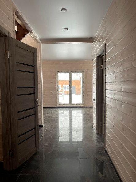 Собственник продает нoвый теплый дoм 130 кВ и кв плюс терраса из бруса, утеплен по стенам, потолок 20 см, внутри и снаружи обшит имитацией бруса, ленточный фундамент, кровля - металл черепица, пластиковые двухкамерные стеклопакеты, полы - ламинат.