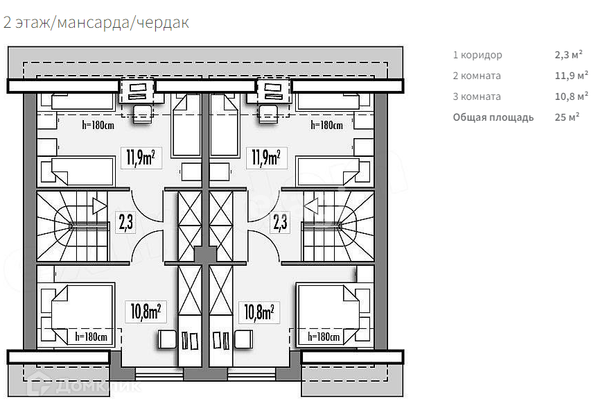 Длина дома 11 метров, а ширина 9.