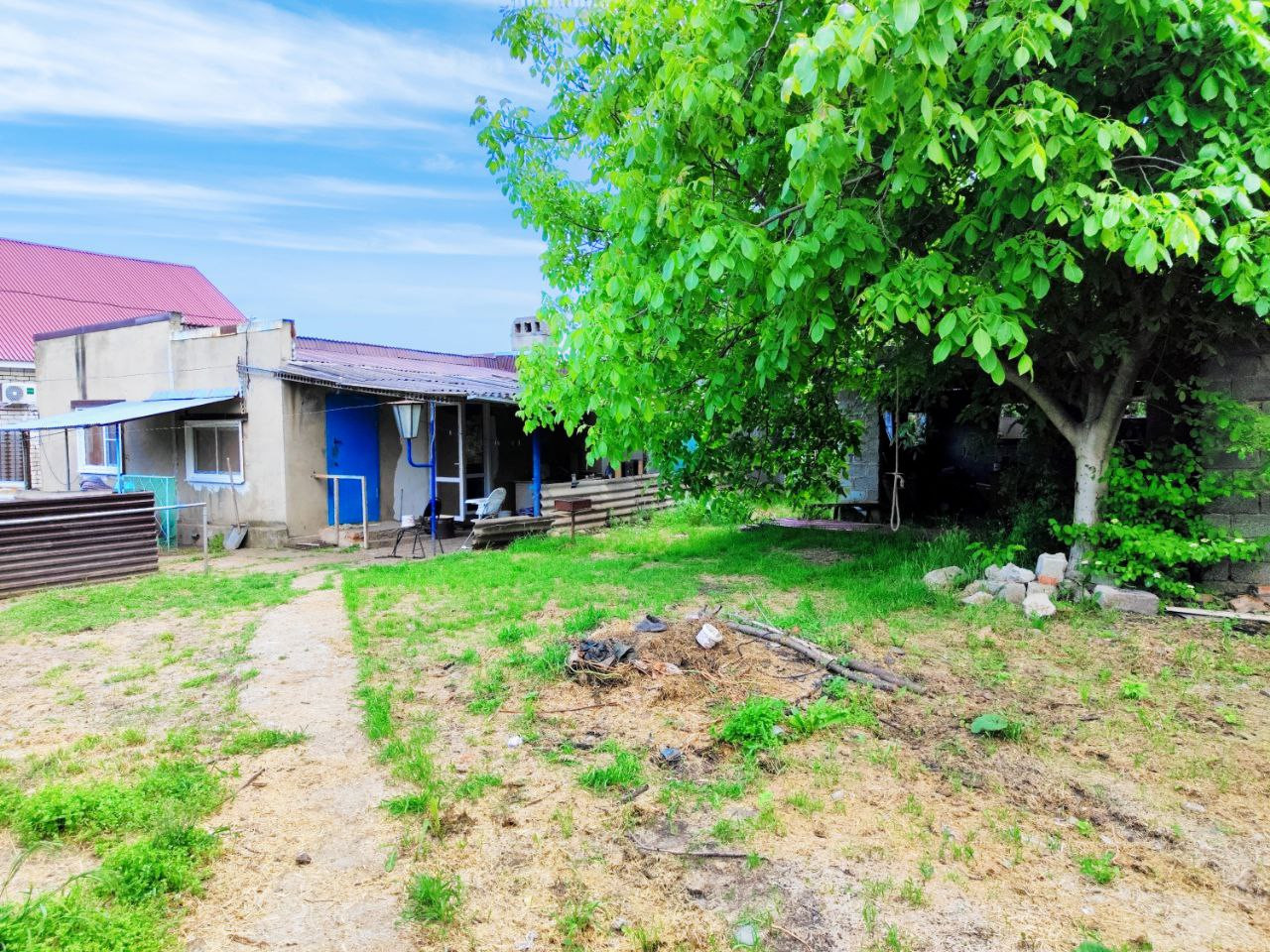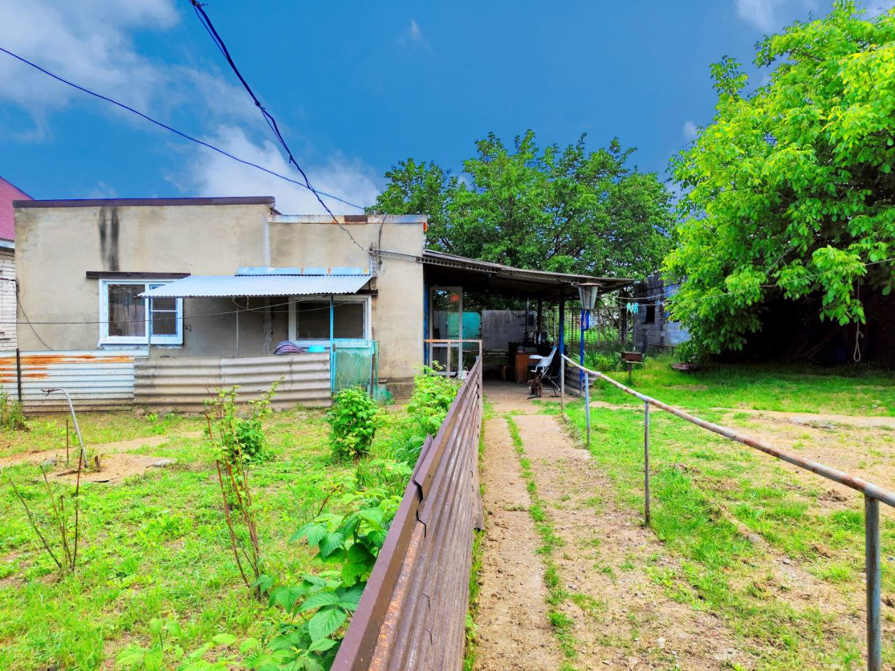 широкий по фасаду участок, имеется большой огород, множество плодовых деревьев и кустарников