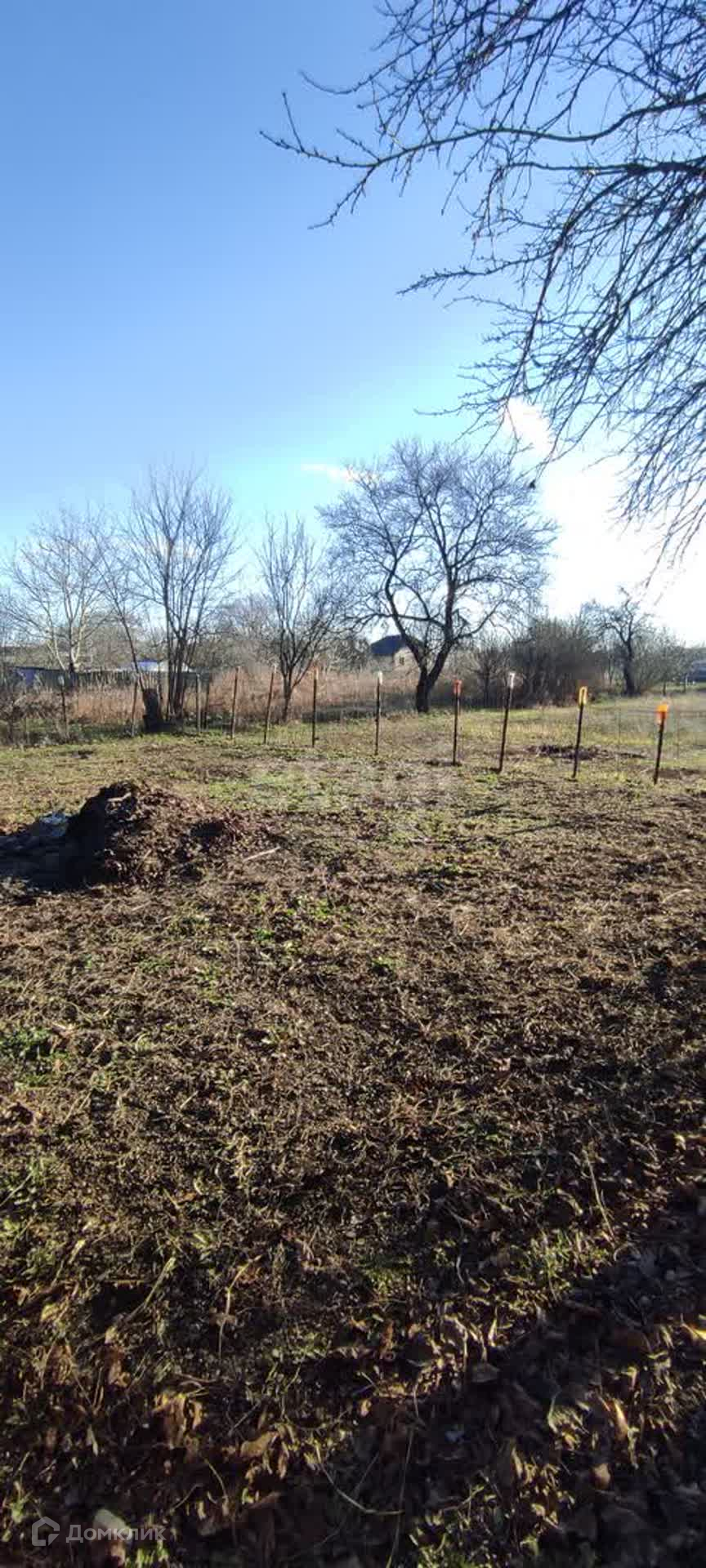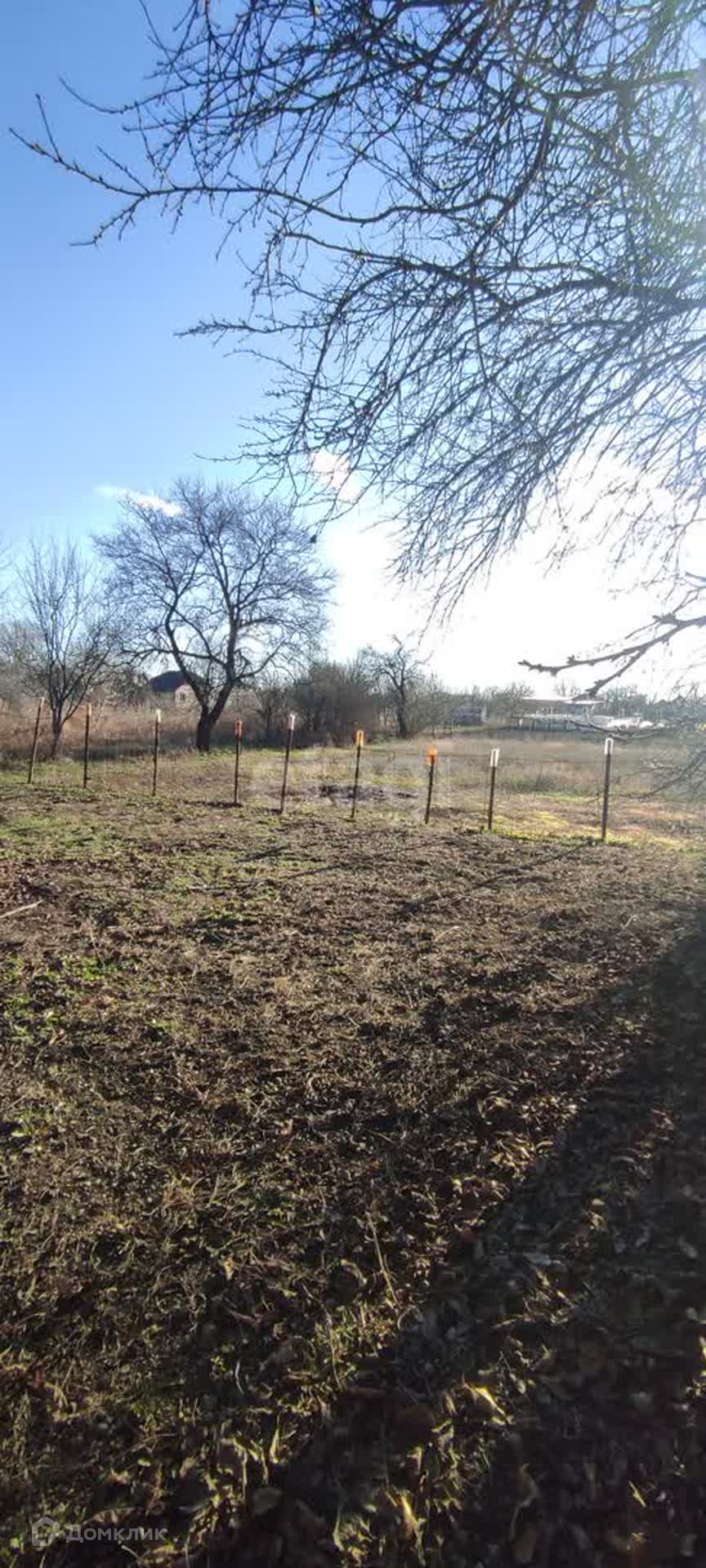 Участок ровный, обработан, с множеством плодовых деревьев.