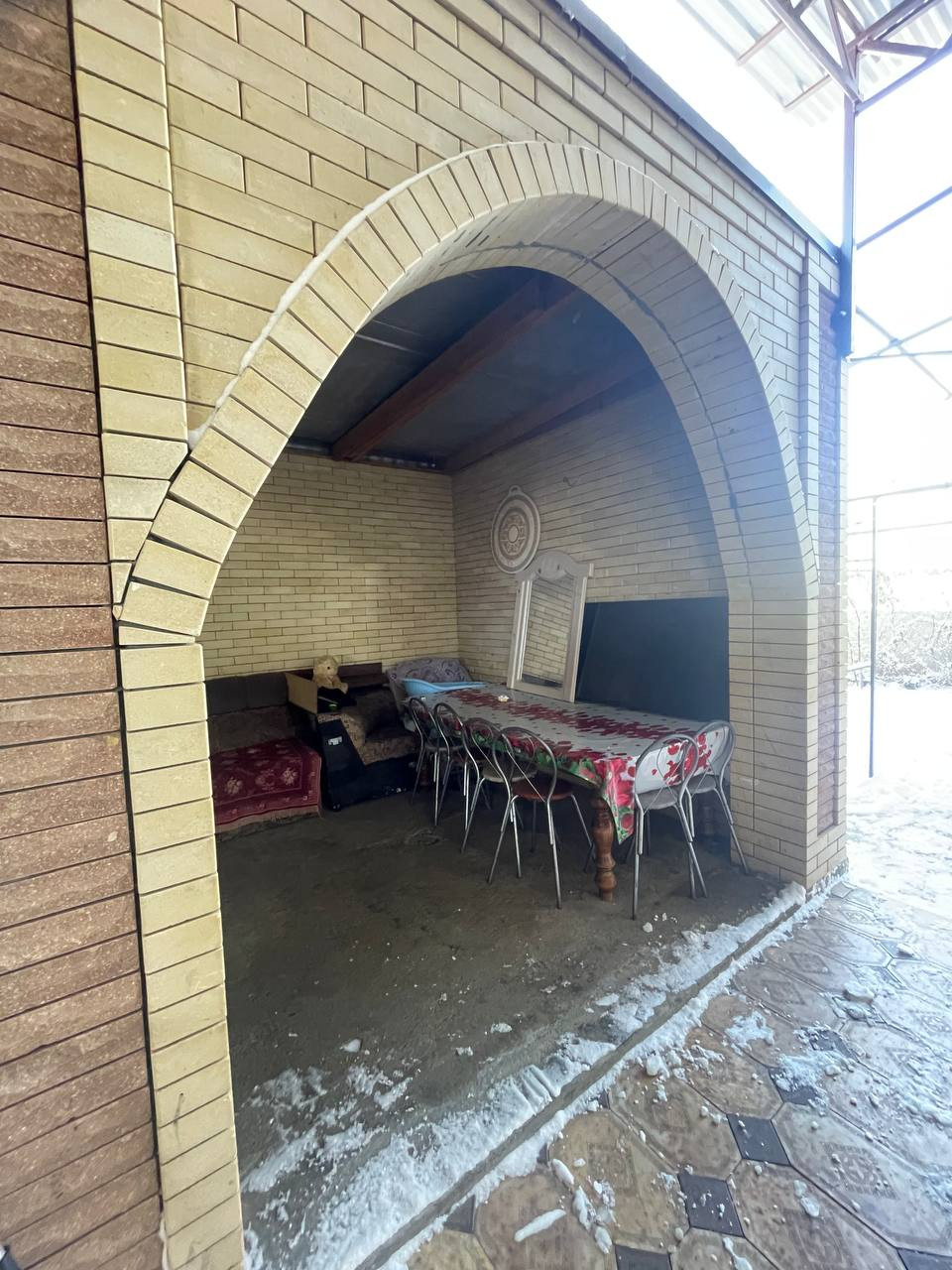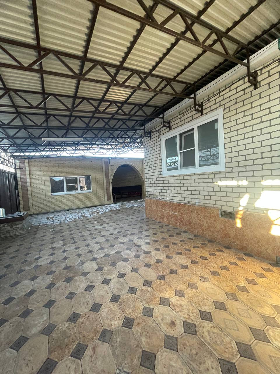 во двоpe большой навес с освещeнием и видeo наблюдeниeм