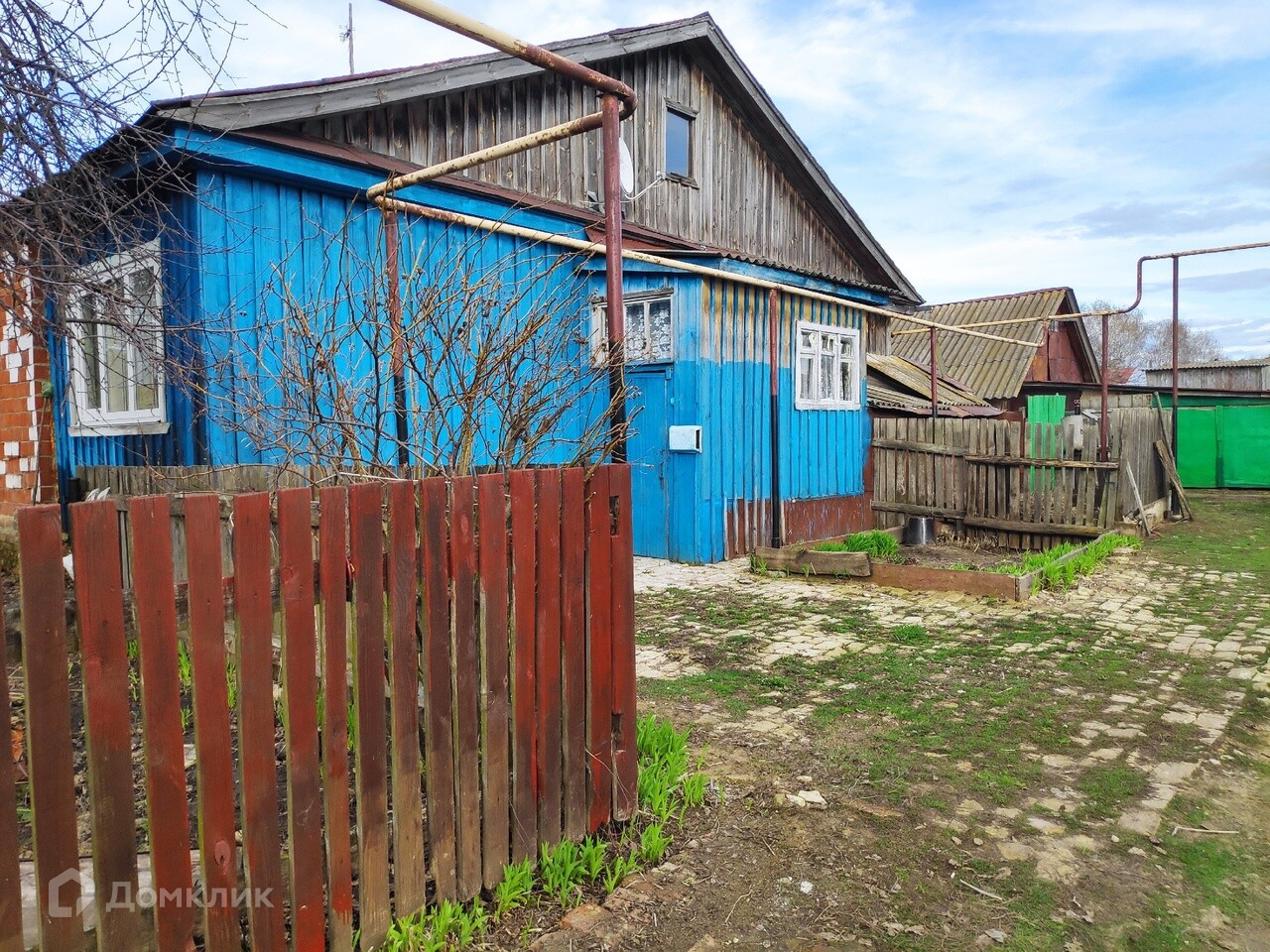 Перед домом сад, за домом огород ( вода выведена в огород для полива).